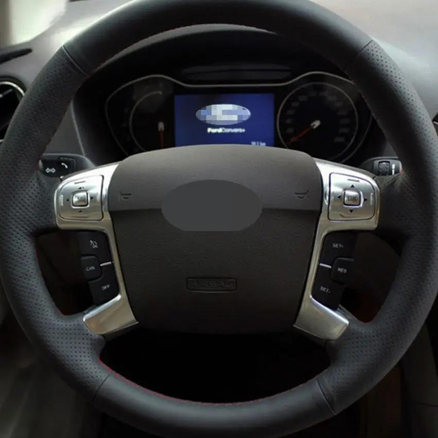 Чехлы на руль из искусственной кожи черные Прошитые вручную чехол рулевого колеса автомобиля для Ford Mondeo Mk4 2007-2012 S-Max 2008