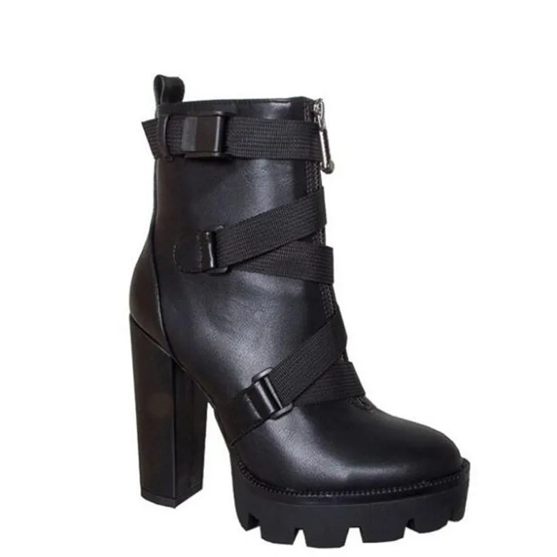 Женские ботильоны на платформе, черные ботинки на толстом каблуке 12 см, большой размер, весна-осень, 2019