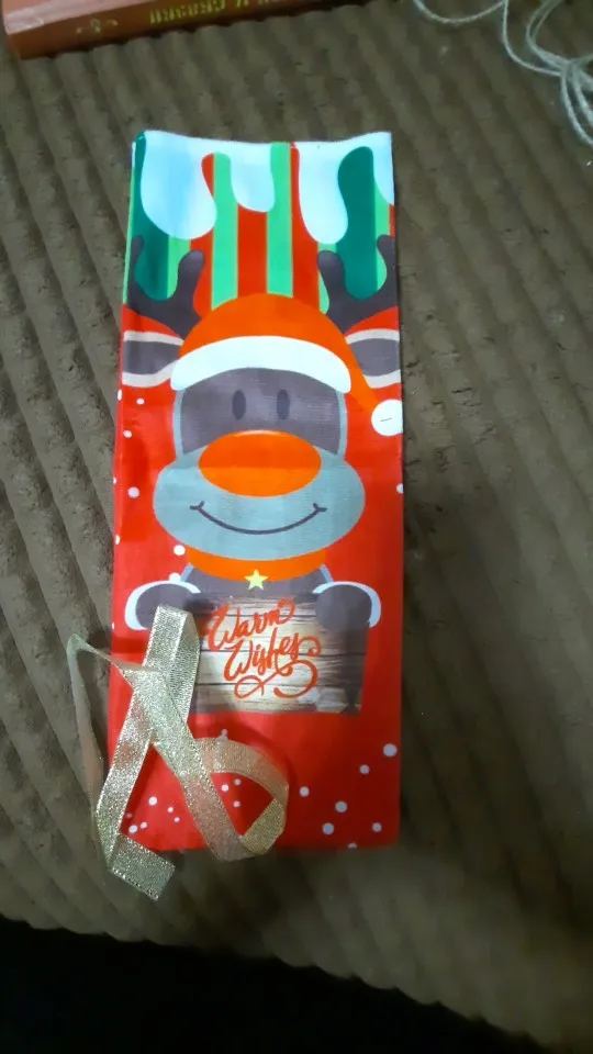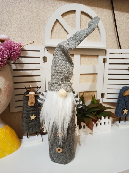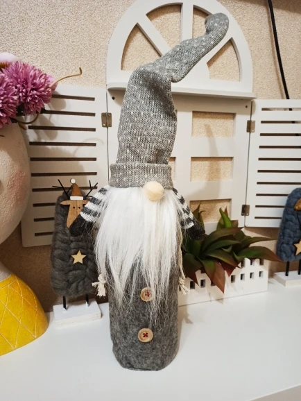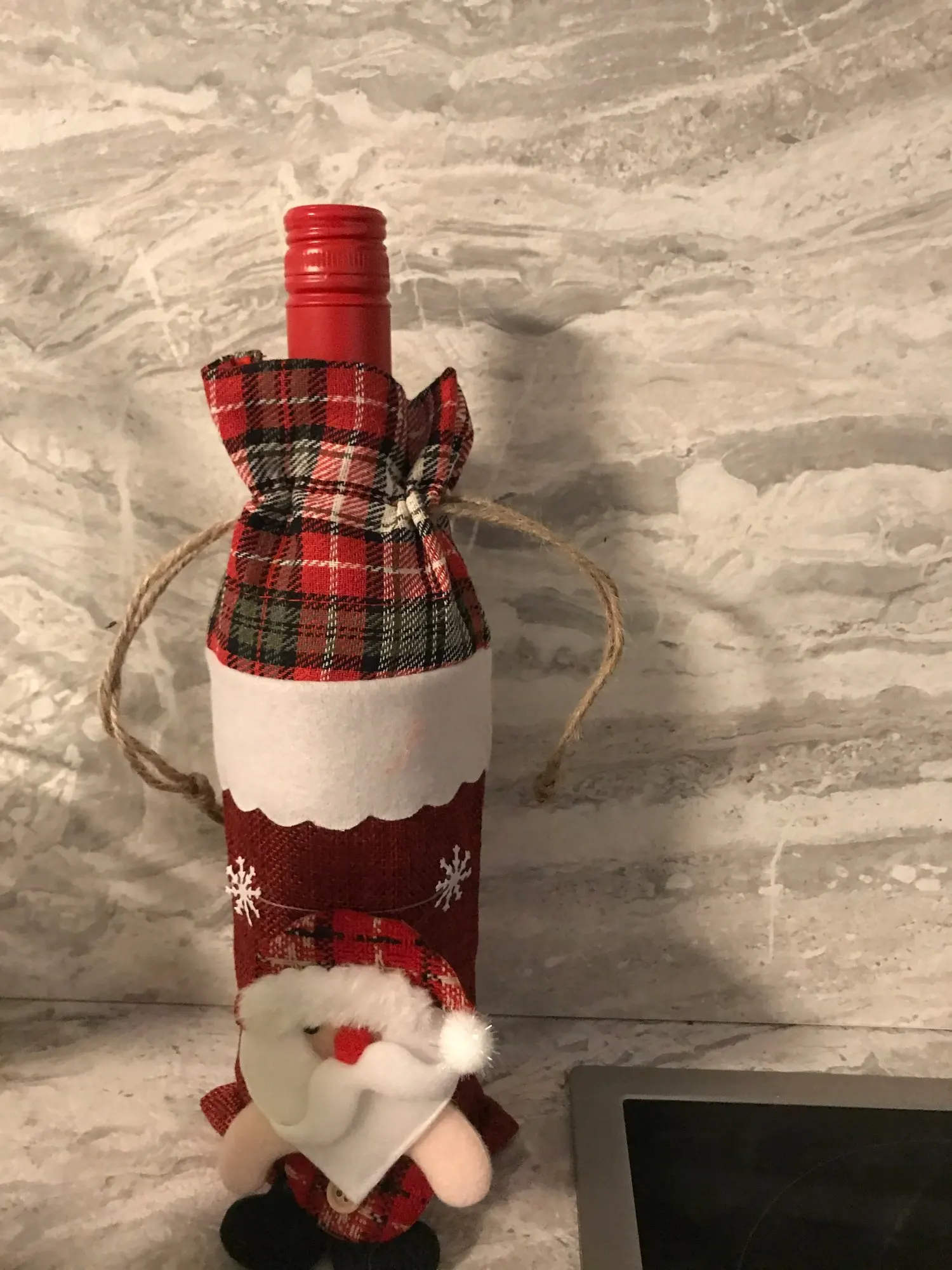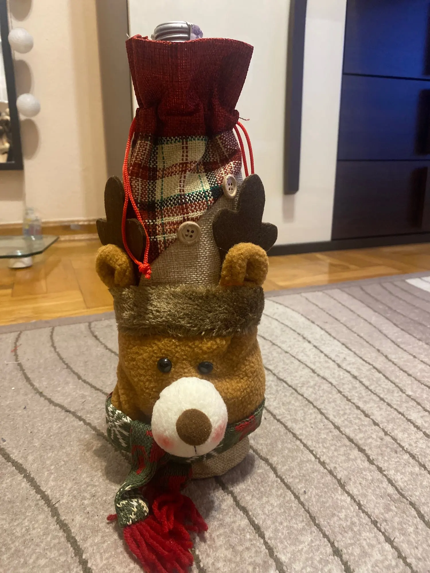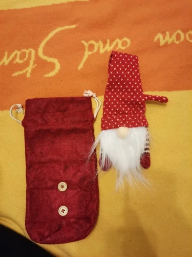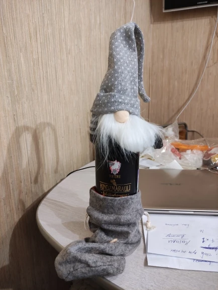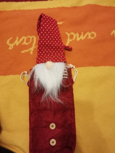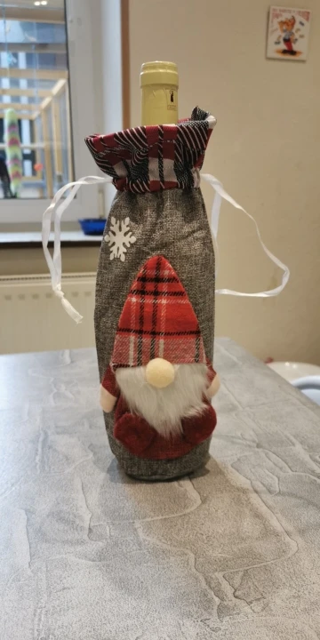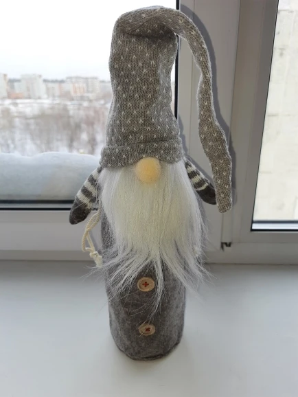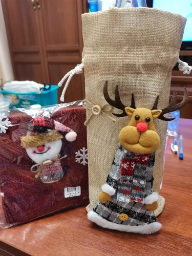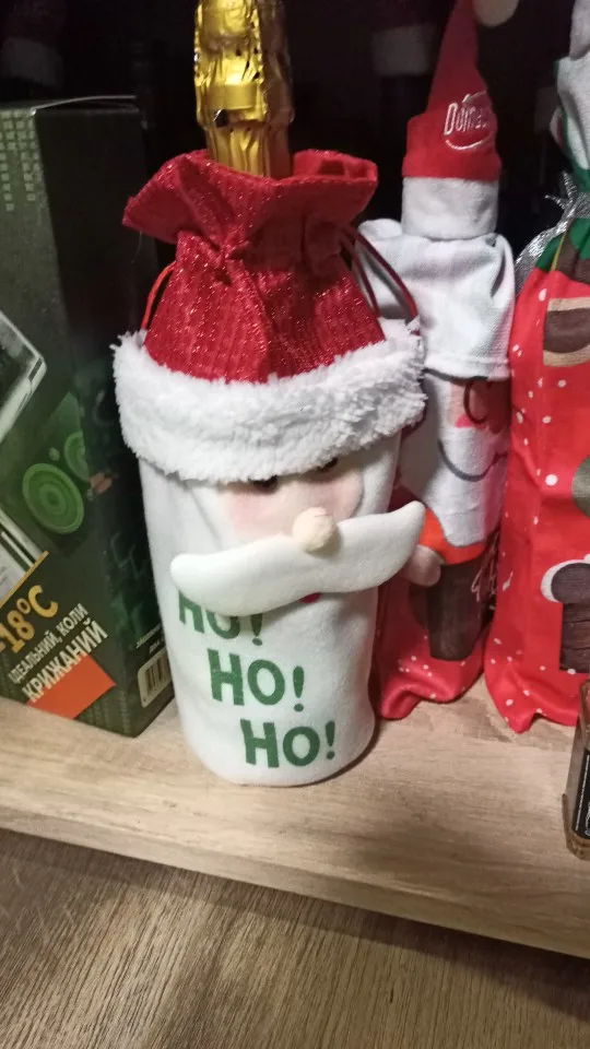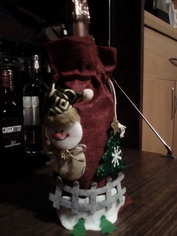 Смешной и забавный праздничный чехол для новогодних бутылок! Доставка была очень и очень быстрая! Упаковано все очень хорошо. Чехол уже использовали в новогоднюю ночь - ребёнок был в восторге!