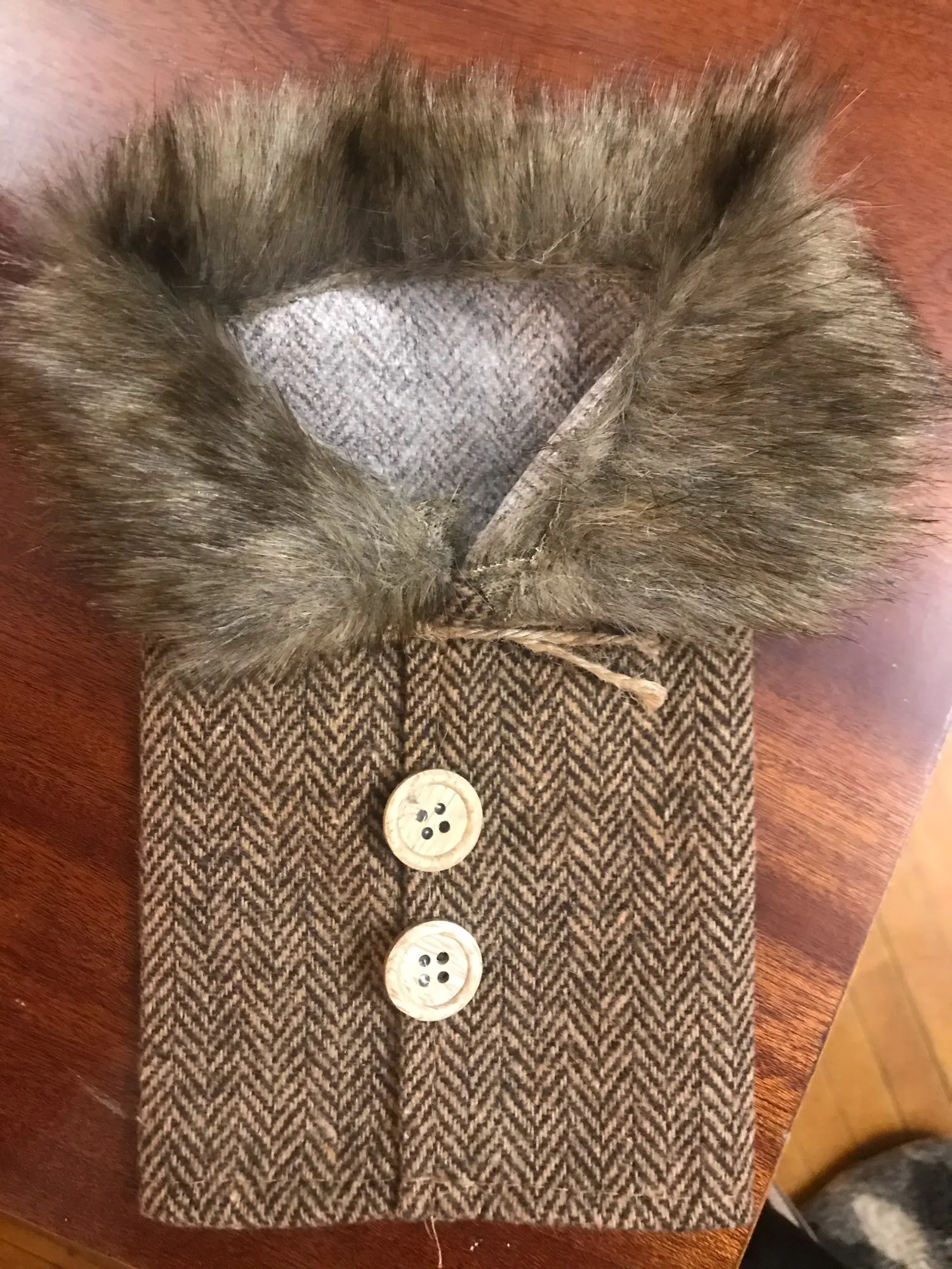 Рекомендую данного продавца. Заказ обработан и выслан в течении 5 дней. В Беларусь товар пришел за месяц. Качество хорошее: прошито отлично, элементы, которые приклеены держатся качественно. Особенно впечатлила меховая одежда для бутылки - очень эффектна.