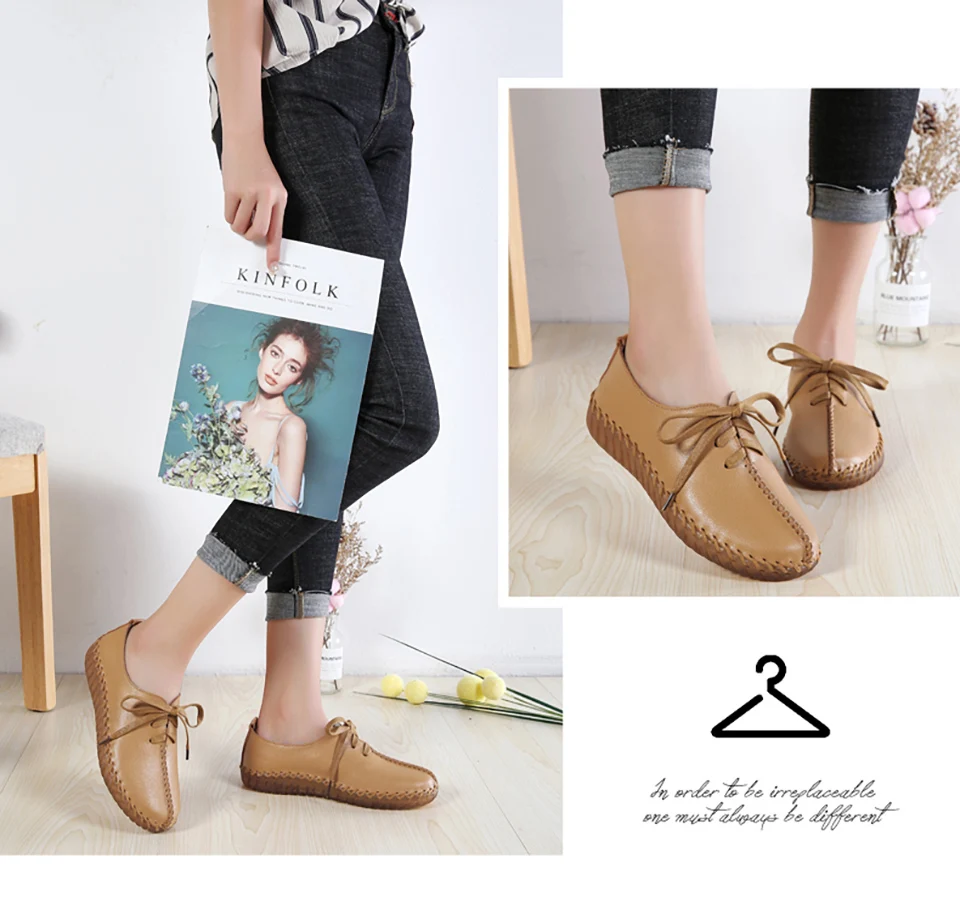 Женские мокасины EOFK, из натуральной кожи, на шнуровке, белые летние кроссовки ручной работы