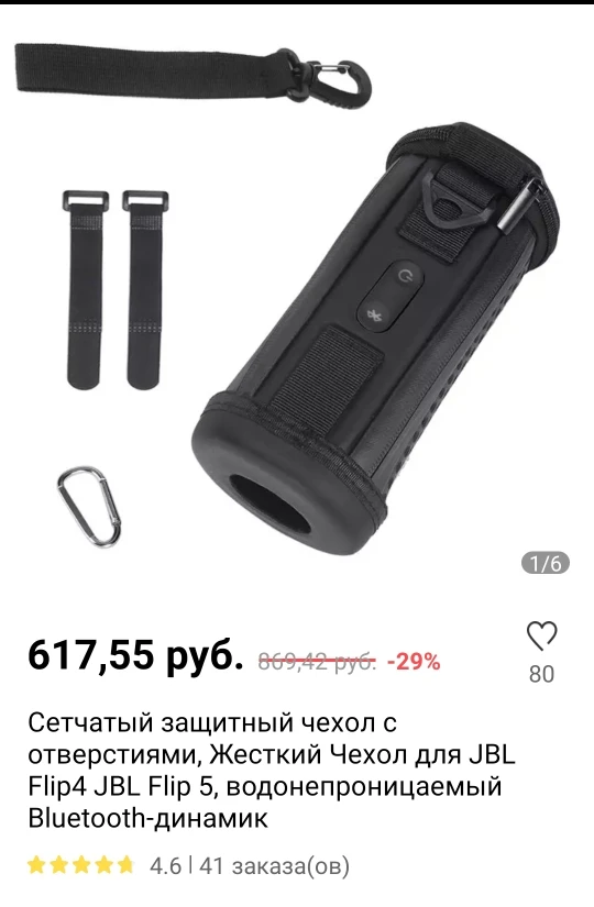 Чехол приехал в Украину довольно быстро, новой почтой. качество материалов, на вид, достаточно хорошее, флип 4 заходит очень туго, не болтается, но отверстия для кнопки включения не совпадает, поэтому приходится вначале включить колонку, а потом засовывать. На гревеле чехол прошёл испытание: не гремел, не болтался, держался весьма надёжно.