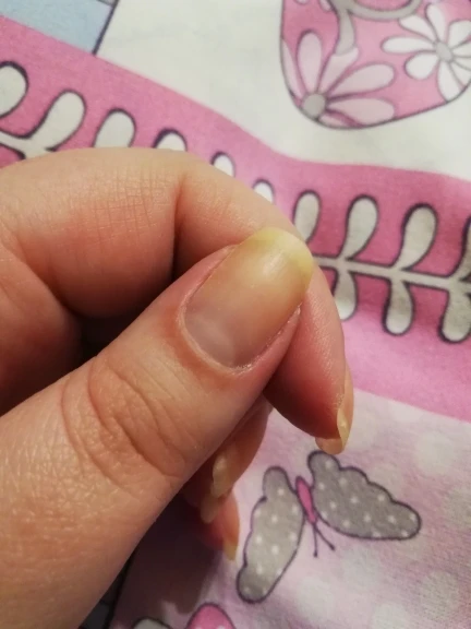 Он выполняет свою функцию, хотя иногда он пигментирует натуральную ноготь, и я должен использовать файлы.