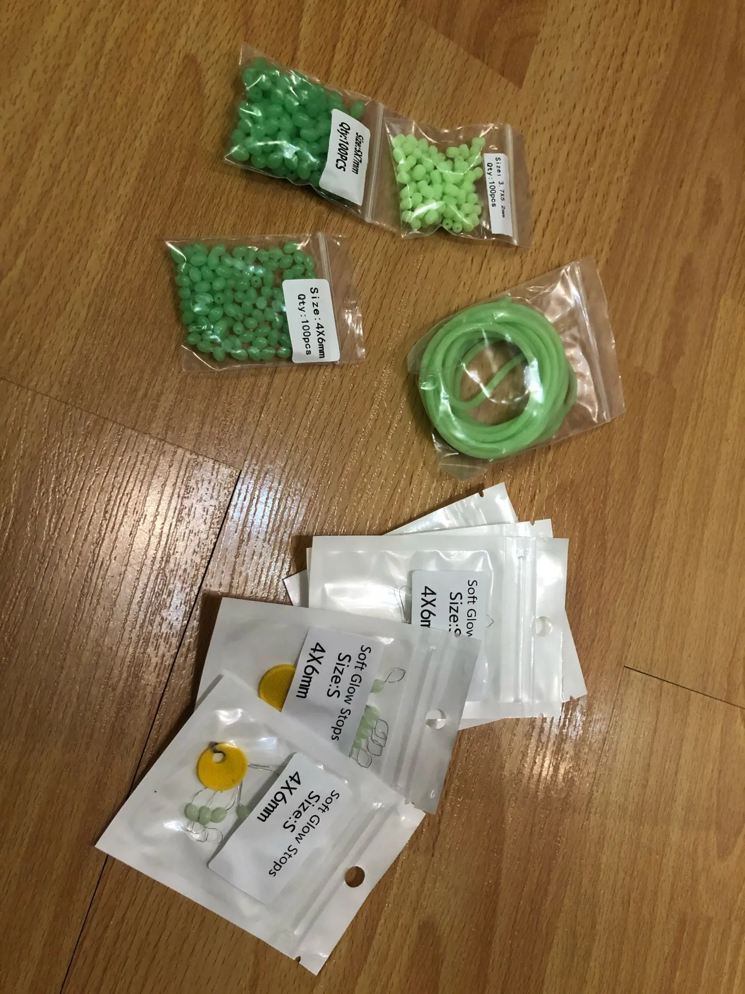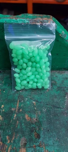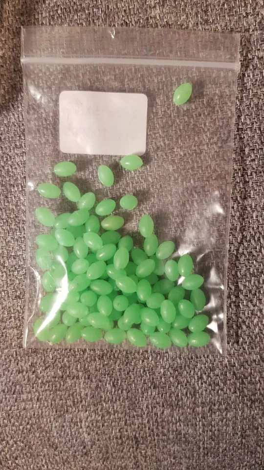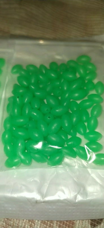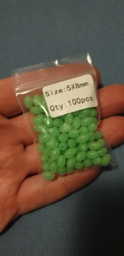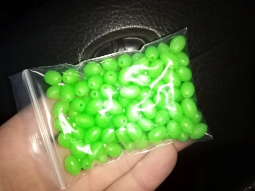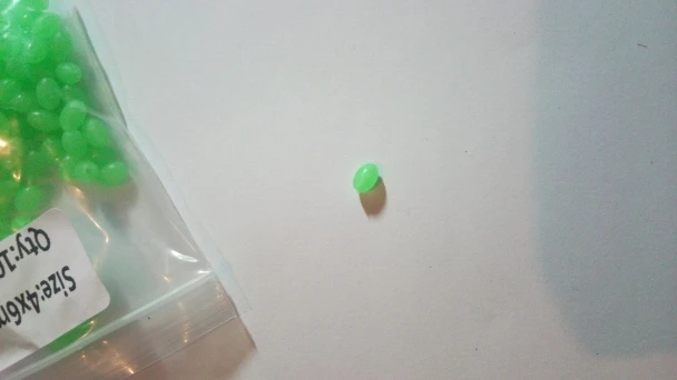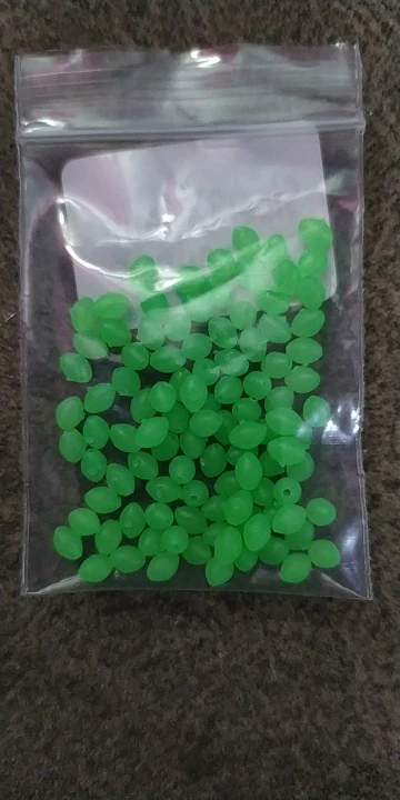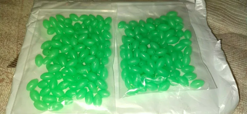 доставка в нормальные сроки,что заказывал,то и получил, бусины светятся даже через пакет, после облучения уф фонариком светятся ещё ярче, для сабики риг и для спускников самое оно!