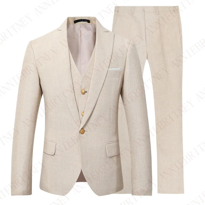 Классический Бежевый Льняной пляжный мужской смокинг из 3 предметов...