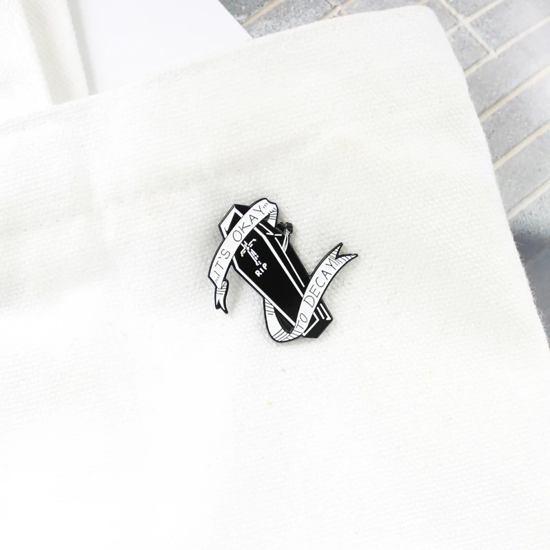 Эмалированная брошь на лацкан It's OK, в готическом стиле, с изображением темно-черного черепа, гроба, в подарок