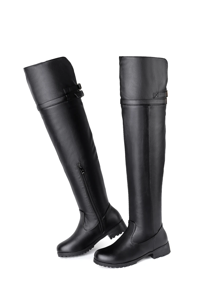 Женские ботфорты на молнии ESRFIYFE, высокие сапоги на толстом каблуке, с ремешком и пряжкой, большие размеры 34-48, 2020