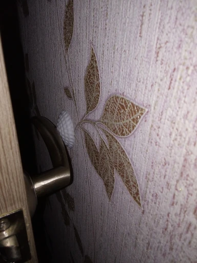 Хороший, упругий, держится пока что хорошо даже на рельефных обоях. Товар рекомендую. Но если у Вас дверь с круглой ручкой у которой замок на самой ручке, то не очень удобен, замок бьётся о накладку. С такими ручками идеально клеить именно со стороны где замочка нет.