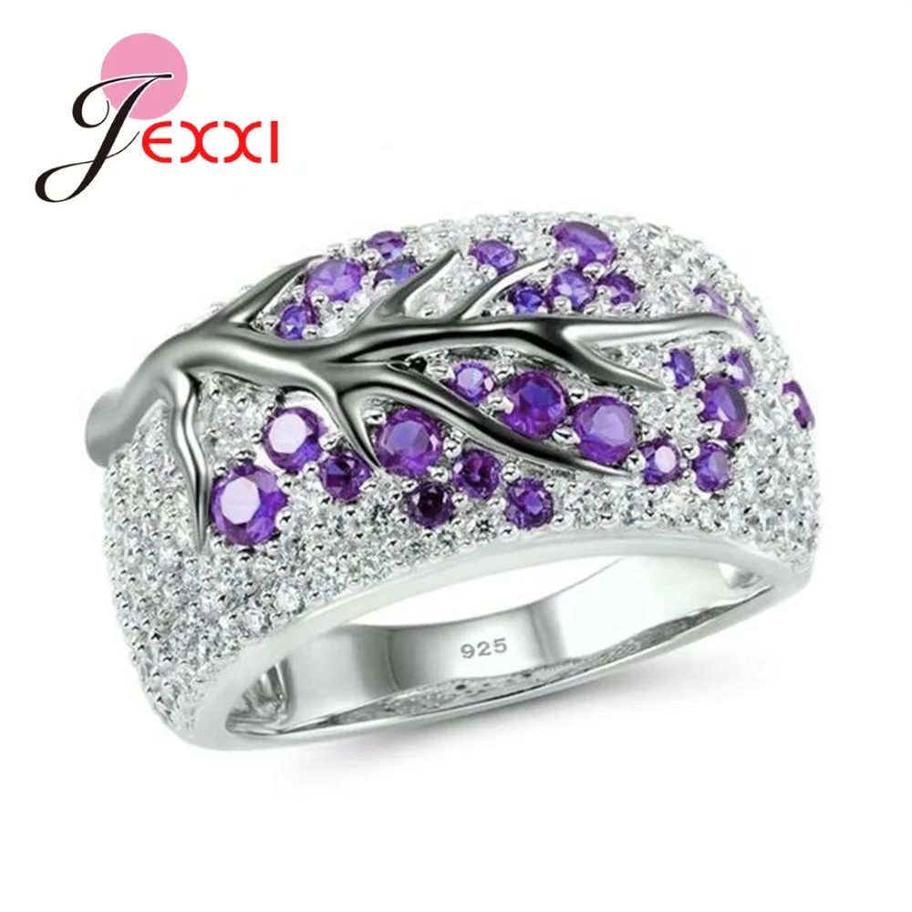 Топ Поставщика женщин 925 стерлингового серебра завод ветка дерева дизайн кольца с драгоценными камнями металла кубический циркон обручальные ювелирные изделия Freebie