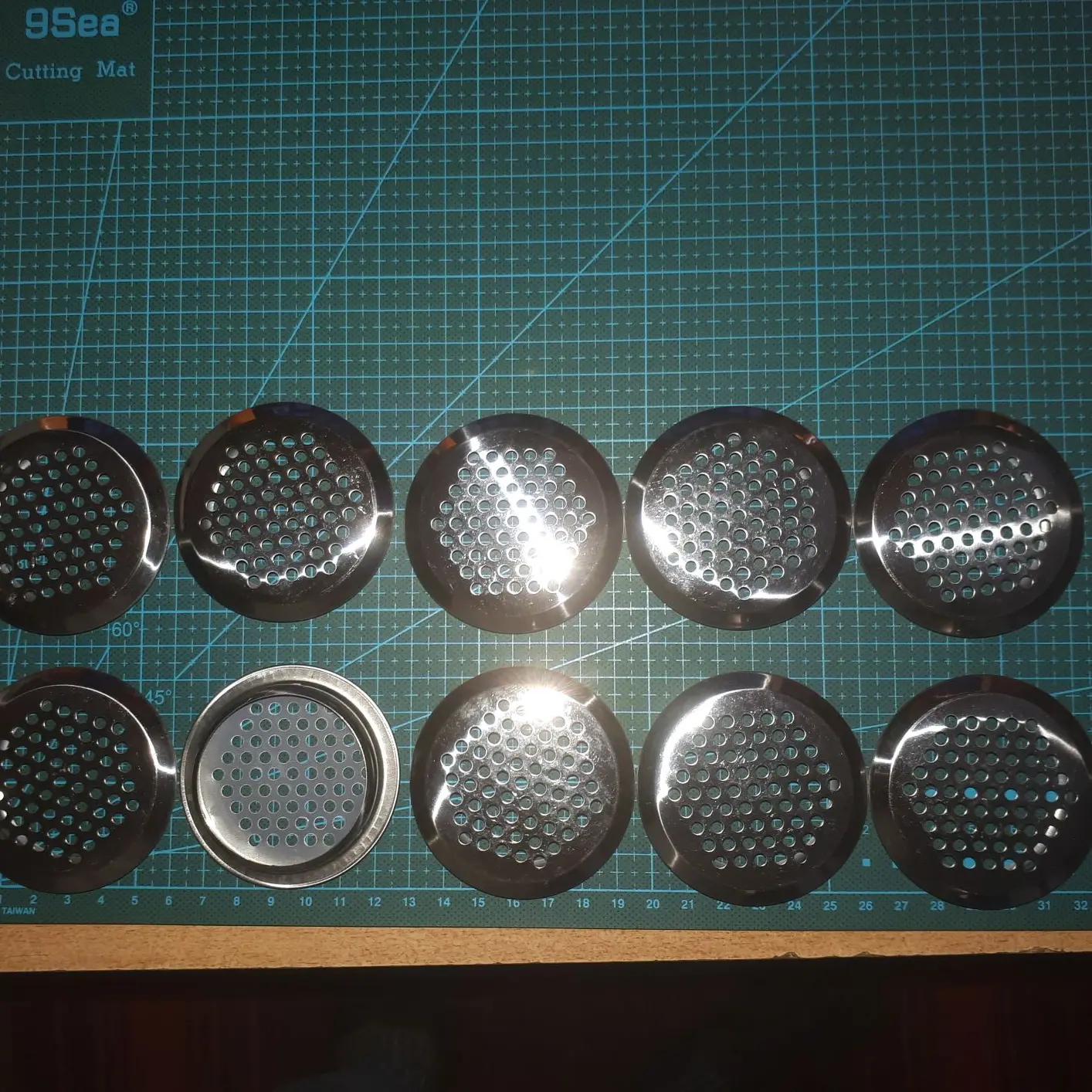 Решетки были плохо упакованы. в итоге за вредя доставки (больше месяца) терлись друг об друга, и потеряли товарный вид. Продавец просто насыпал 20 штук в один пакет и выслал.