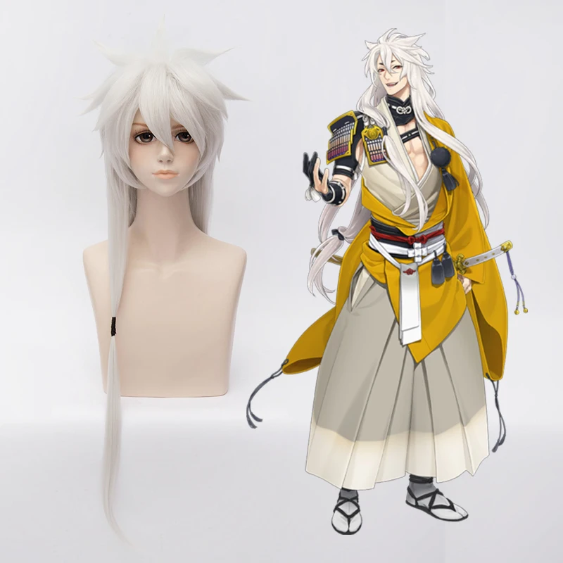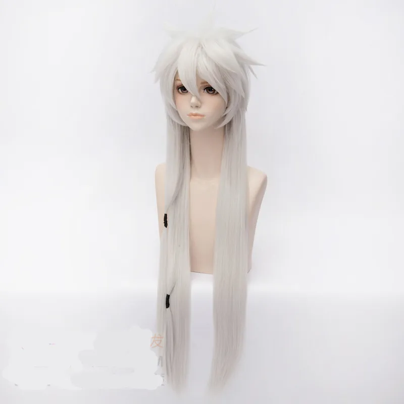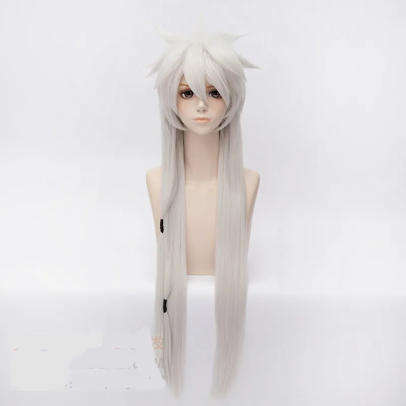 Парик для косплея Kogitsunemaru из игры Touken Ranbu Online, длинные прямые серебристые и белые синтетические волосы, 100 см + бесплатная шапочка для парика