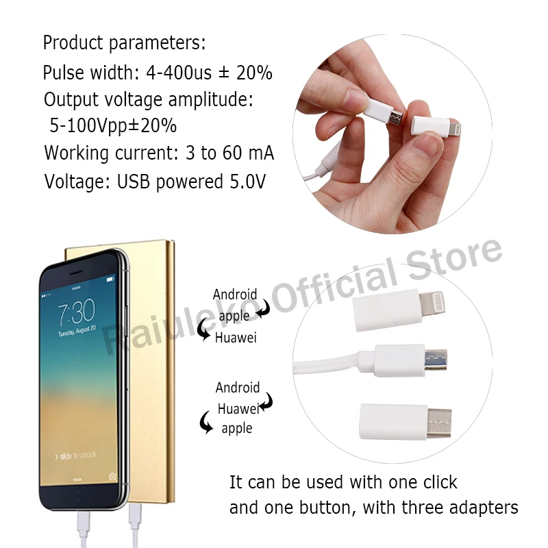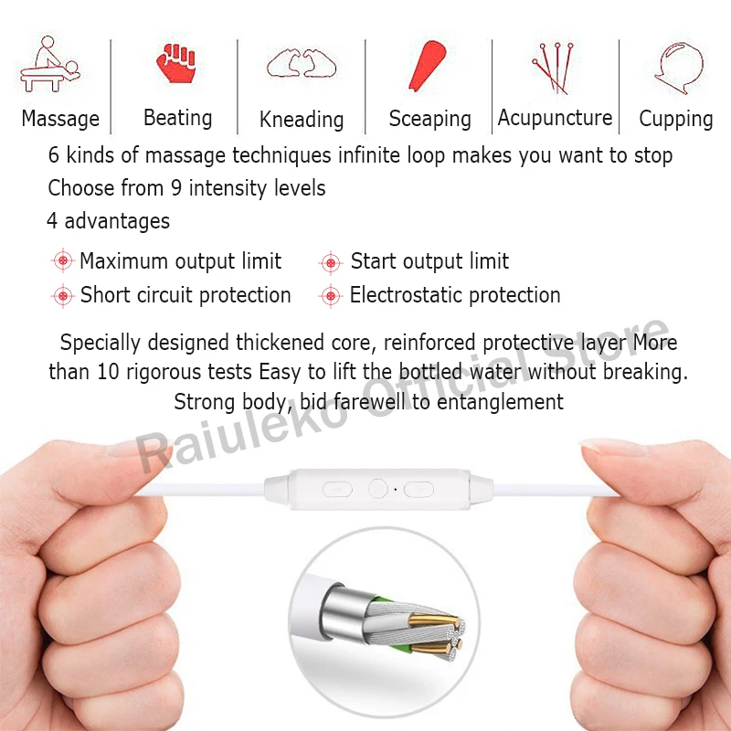 Этот продукт является очень портативным массажным устройством с линейным управлением, не нужно заряжать и заряжать аккумулятор, можно использовать Подключи телефон или блок питания, прост в эксплуатации, трехкнопочное управление, выбор 6 режимов, 9 уровня регулировки интенсивности.