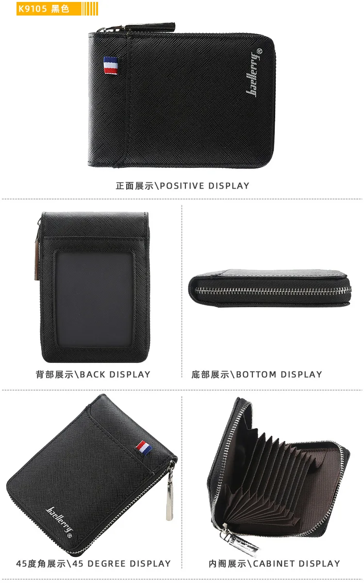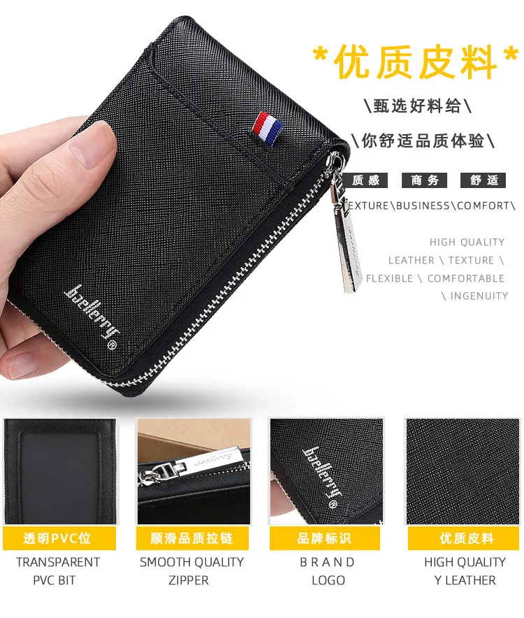 Модный мужской кошелек на молнии, маленький короткий держатель для ...