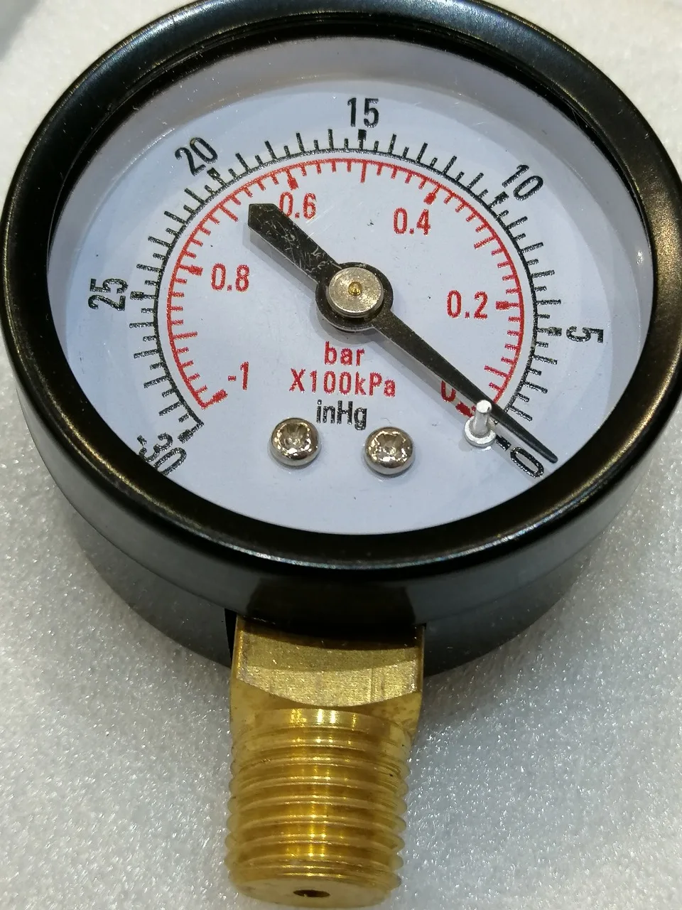 Вакуумметр полностью рабочий. До - 0,6 стрелка идёт плавно, потом с небольшими рывками. Но показывает вакуум верно (в разумных границах)