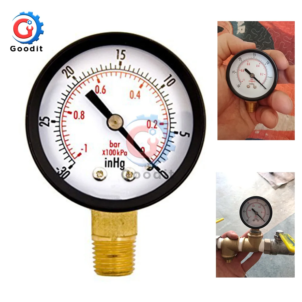 Портативный Манометр с двумя циферблатами, 14 дюйма, NPT -30HG0PS, вакуумный манометр, манометр, 2 дюйма, циферблатный дисплей, цифровой манометр