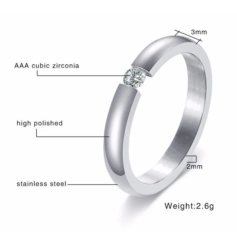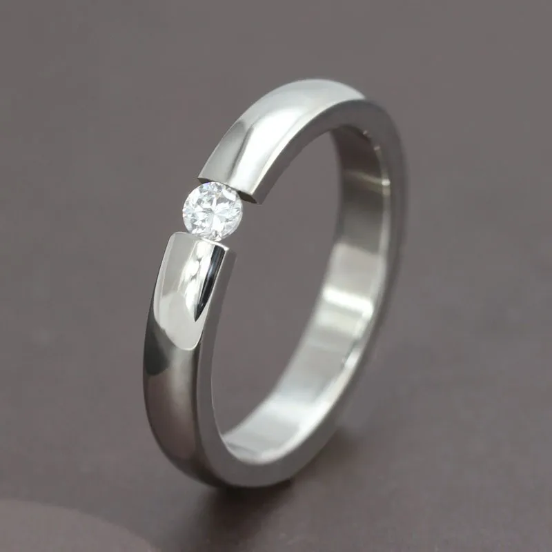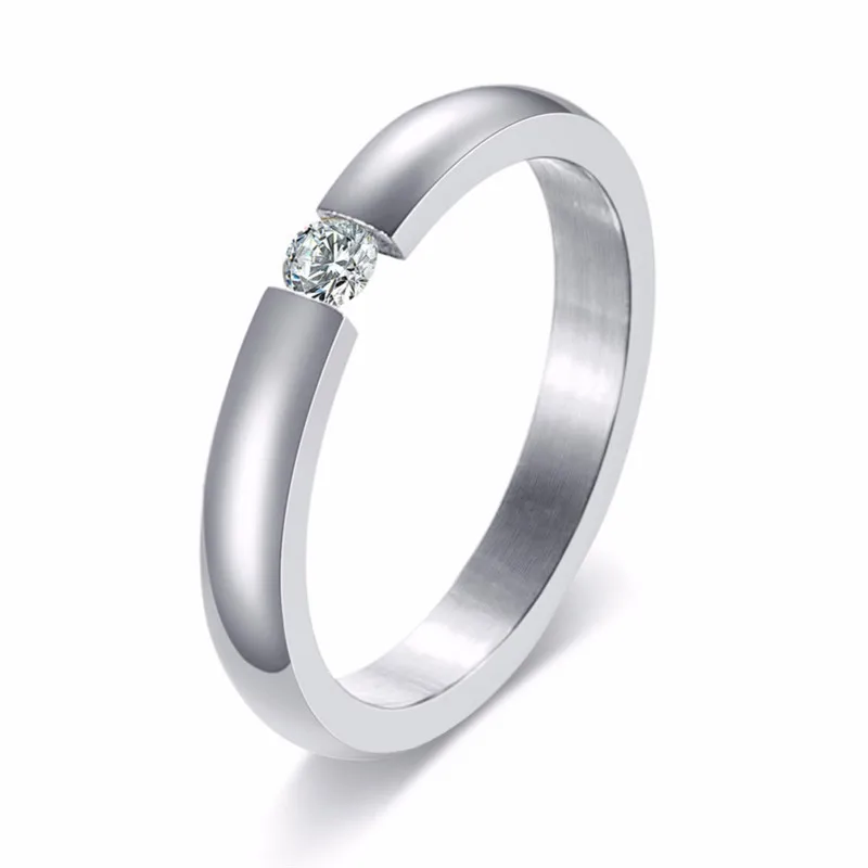 Серебряное обручальное кольцо из нержавеющей стали с фианитом