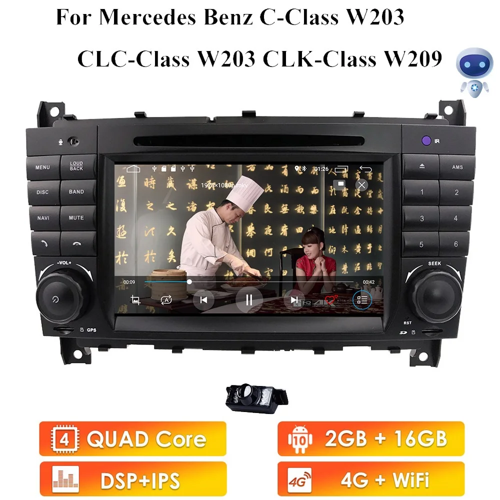 Ossuret автомобильный мультимедийный плеер gps Android 9 2Din DVD Automotivo для MercedesBenzc-класс CLC W203 C180 C200 CLK W209 компактное минирадио
