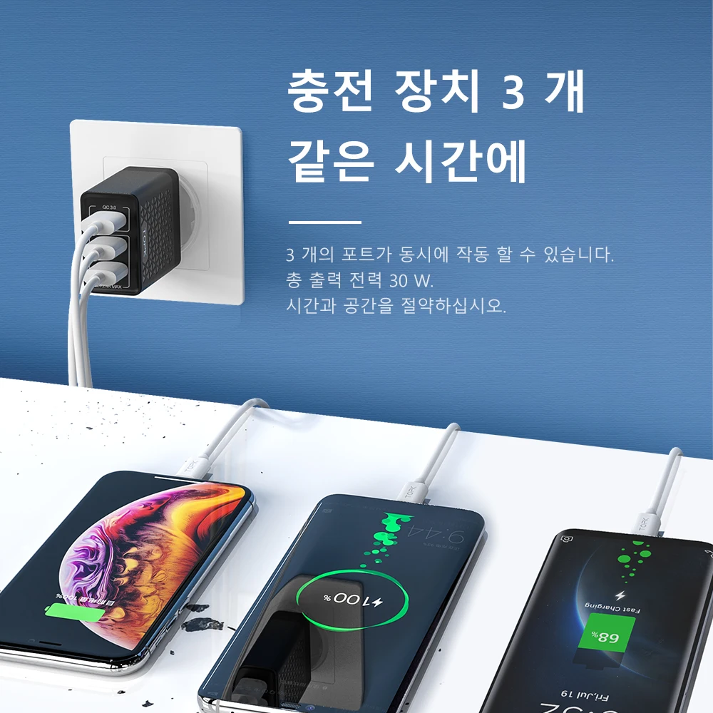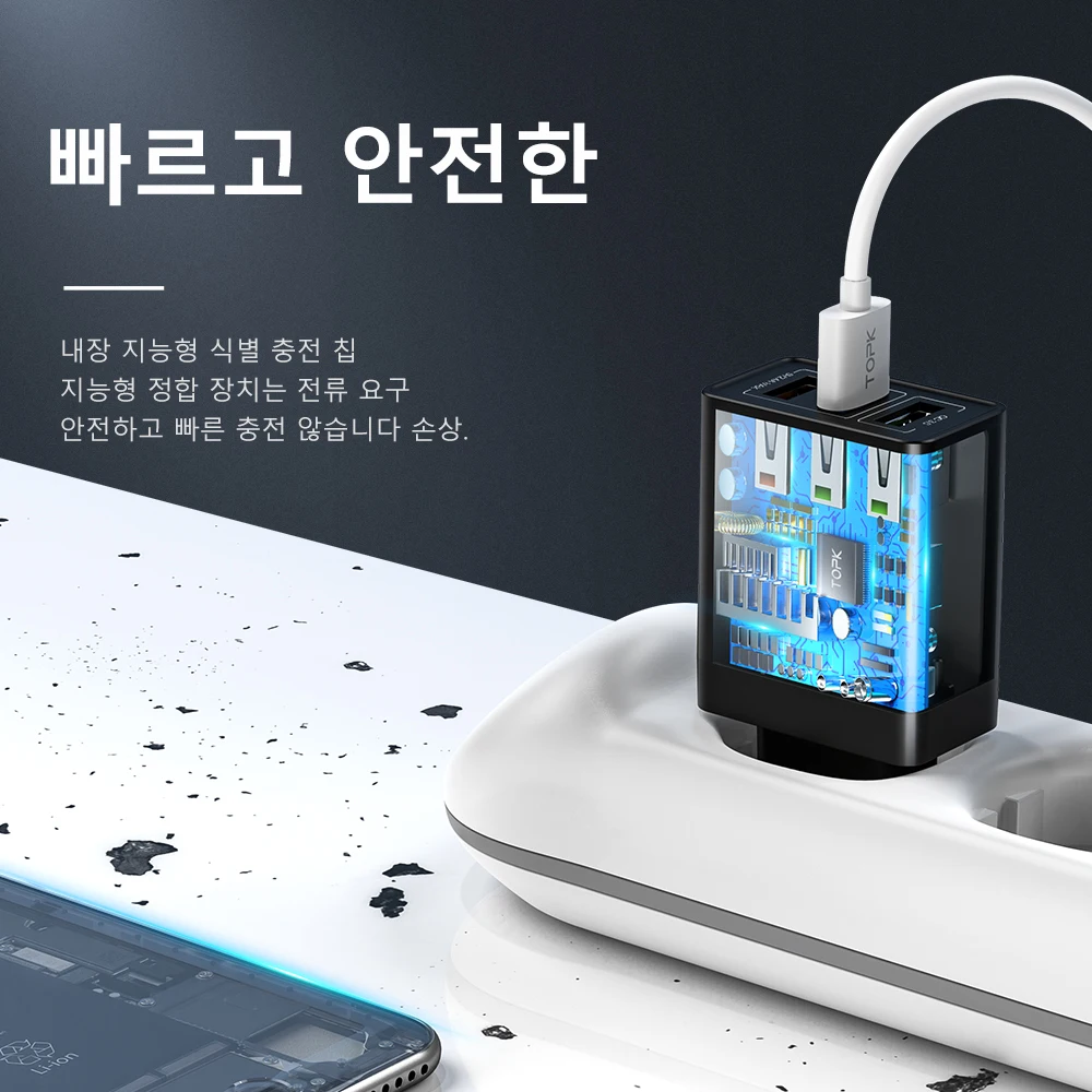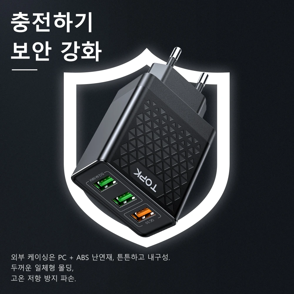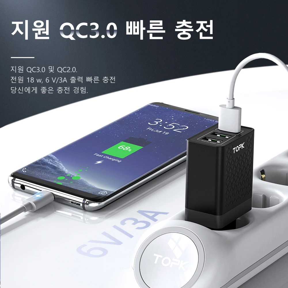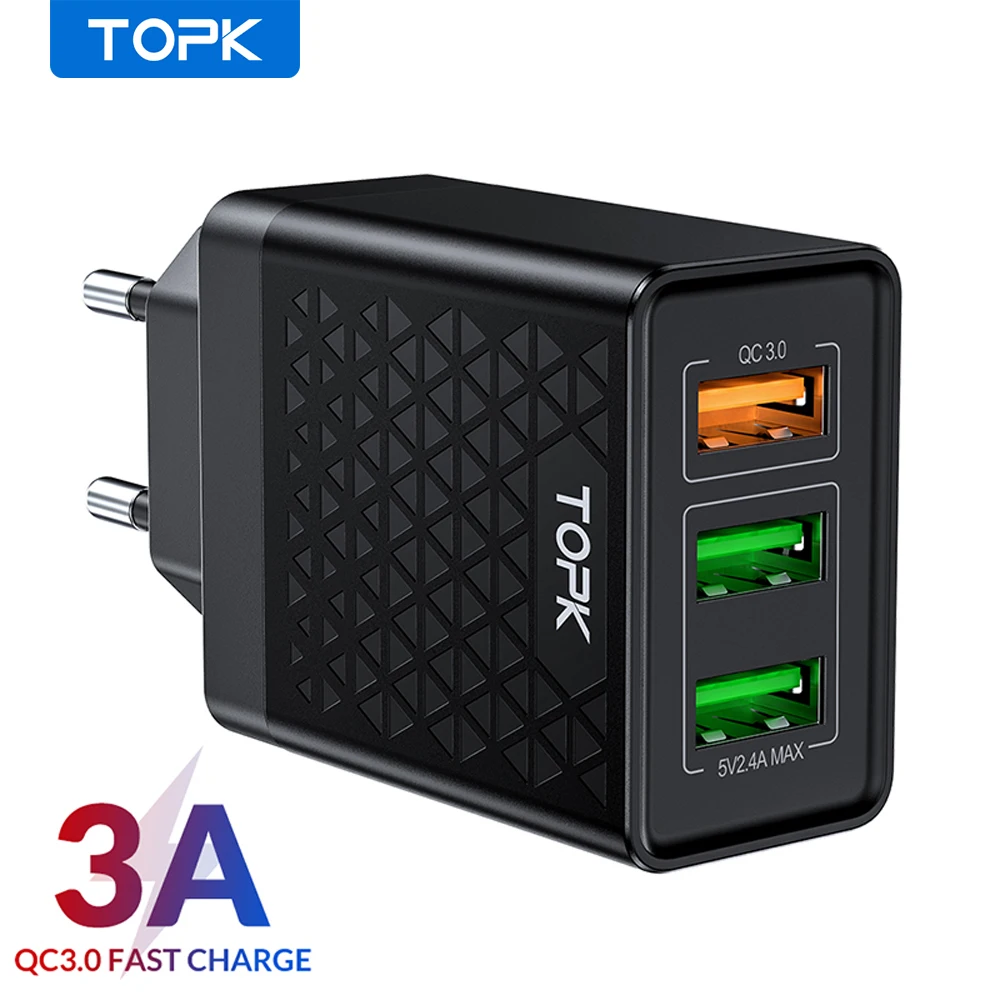 Быстрое зарядное устройство TOPK B354Q, 3 порта, 30 Вт, USB 3,0, для iPhone, Xiaomi, Samsung, QC3.0, настенное зарядное устройство для быстрой зарядки телефона