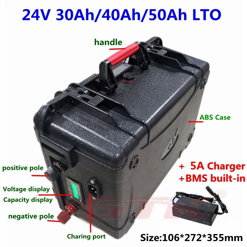Литиевый аккумулятор LTO 24v 30Ah 40Ah 50Ah titanate, 2000 циклов, 24В аккумулятор лто с BMS для скутера, велосипеда, резервного питания, 5А зарядное устройство