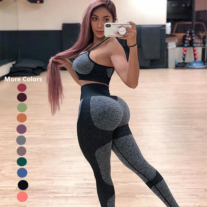 Женские спортивные костюмы из 2 предметов, бесшовные комплекты для йоги, леггинсы с высокой талией для бега и тренировок, брюки и бюстгальтеры