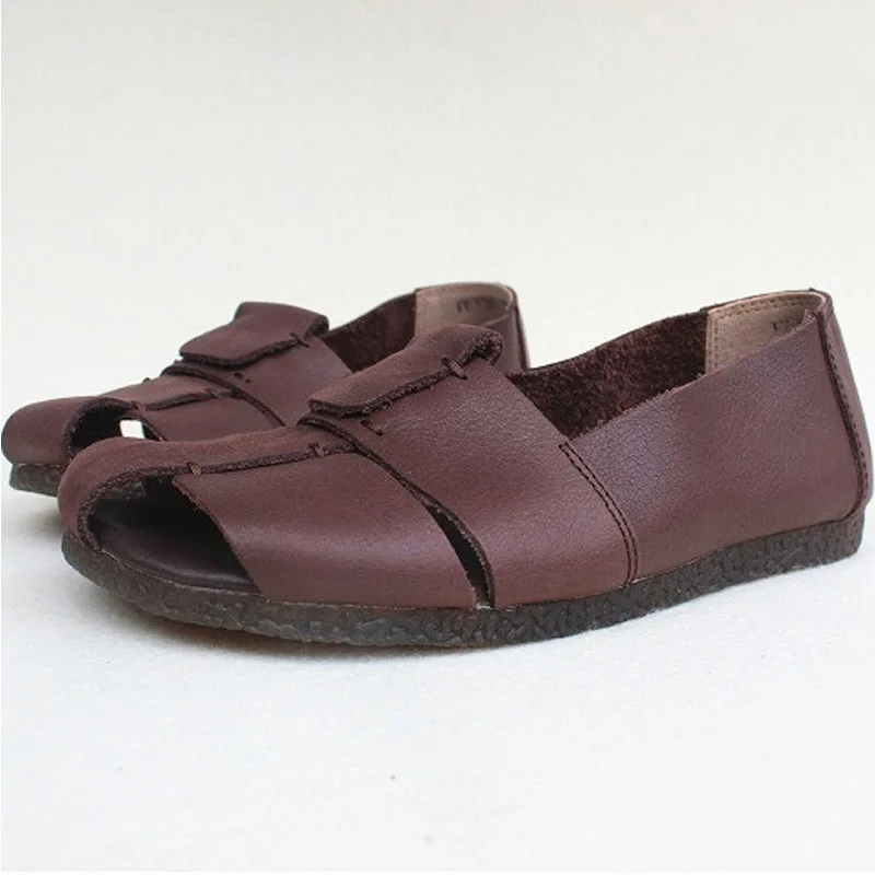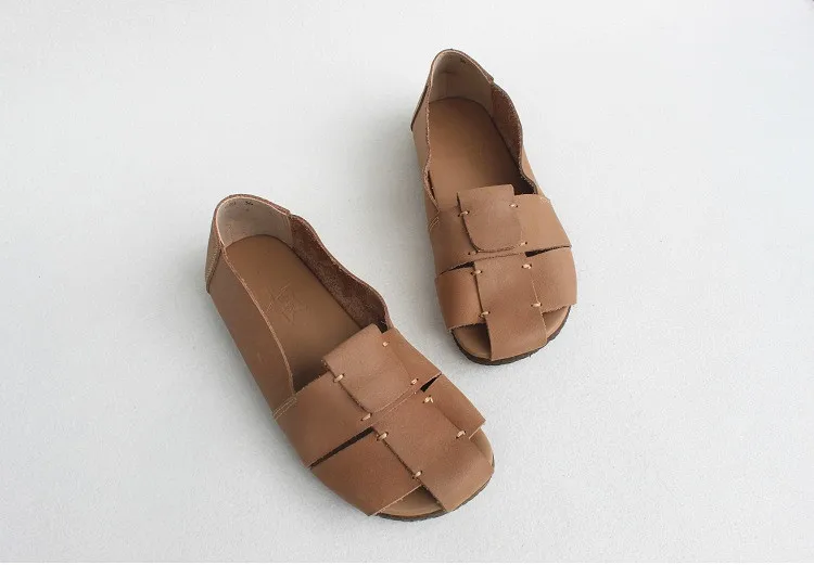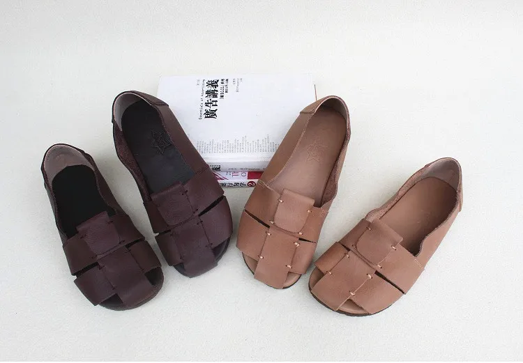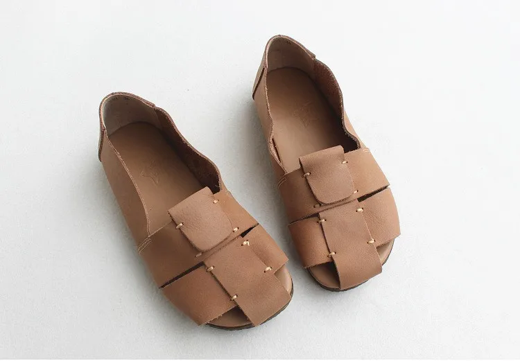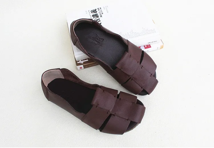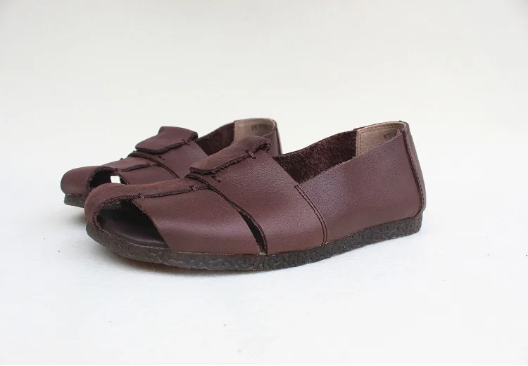 Женская обувь; Лоферы без шнуровки; Летние балетки с открытым носком; женская обувь из 100% натуральной кожи; женская обувь на плоской подошве; шикарная обувь в римском стиле