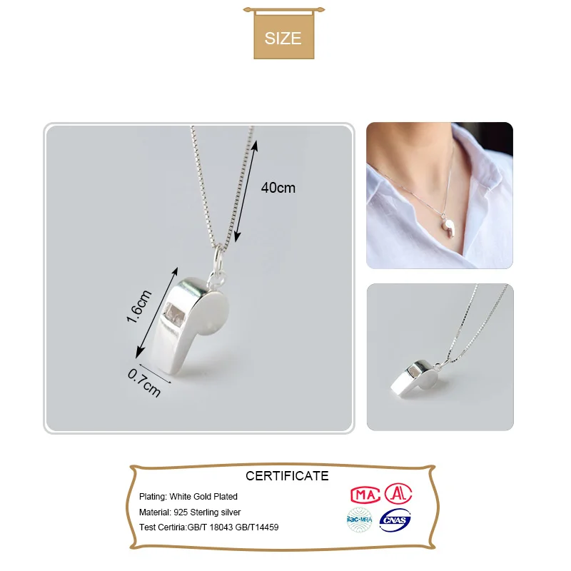 Оригинальное ожерелье Trustdavis из 100% стерлингового серебра 925 пробы со свистком, замечательное для женщин, девушек, серебро 925 пробы, ювелирные изделия DT24