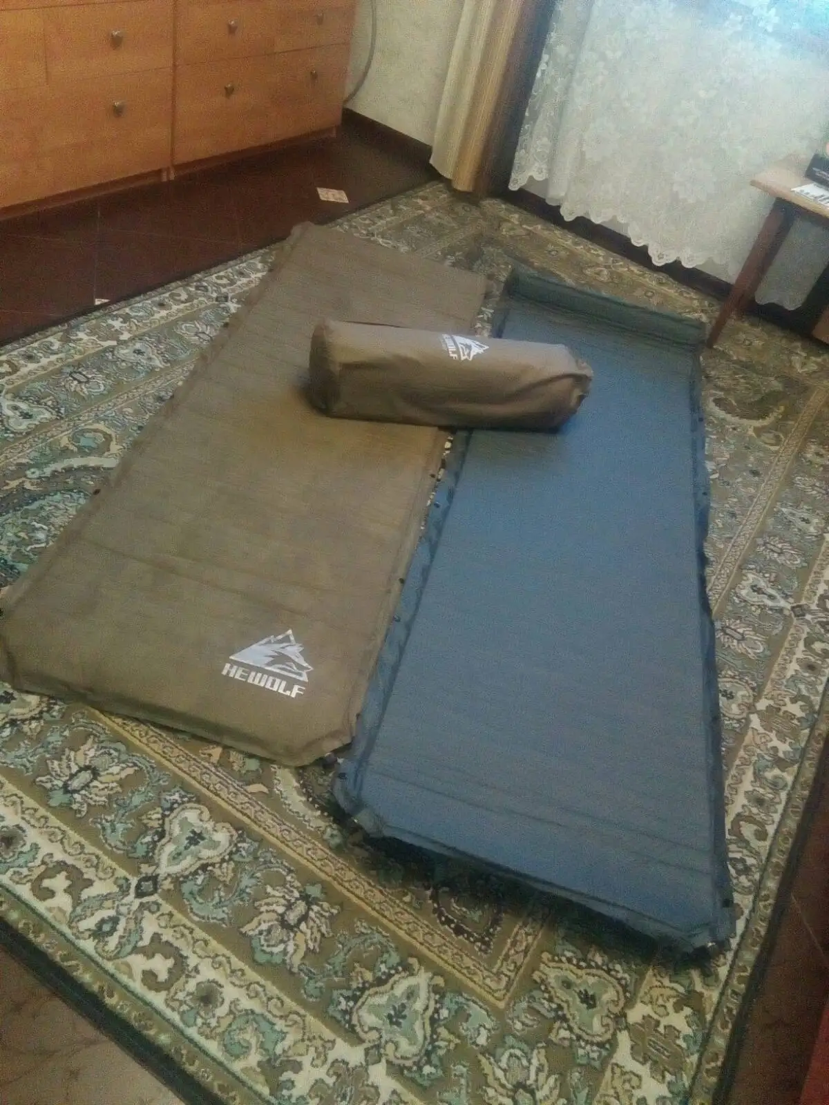 Заказывал 3 штуки, сразу на палатку. От оплаты до получения в Беларуси прошло 9 недель, при плате за доставку 50$, думал будет быстрее. Упаковано хорошо, в коробку из гофрокартона, обклеено пленкой, написано mat, 20$, таможню прошло без платежей. На этикетке указано 200х63х6.5см. Ну что сказать, 200х63 это в виде плоского листа, когда надуется, надо отнять по 3 см с каждой стороны, будет 194х57. Клапанов два, латунные, крышки внутри латунные, снаружи пластик. Распаковал, открыл клапаны, быстро надулся до 2-3 см, за ночь до 4, насчет 6.5 не уверен, если за пару суток не надуется хотя бы до 6 открою спор. Масса соответствует заявленой, 2.42 кг. Одна сторона велюр, очень приятный на ощупь, вторая что-то типа оксфорда в пупырышках из пвх. Кнопки по бокам пластиковые, держат хорошо, можно поднять все три состегнутых коврика вместе. Две резинки для фиксации в свернутом состоянии, чехол, ремнабора нет никакого. Все очень добротно и аккуратно сделано.