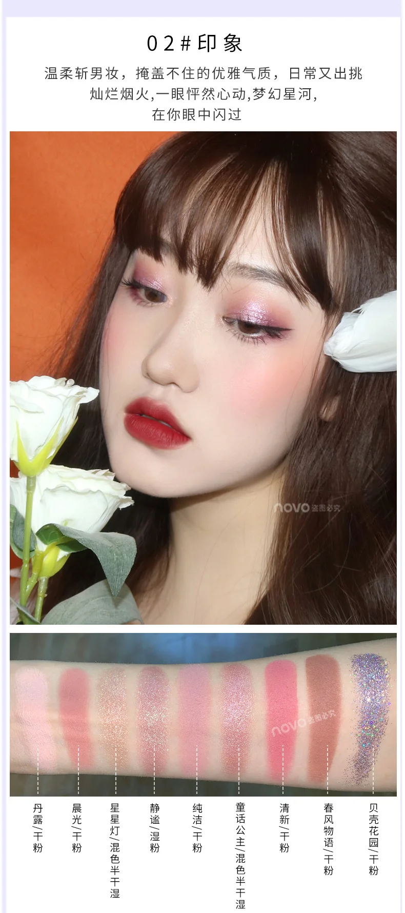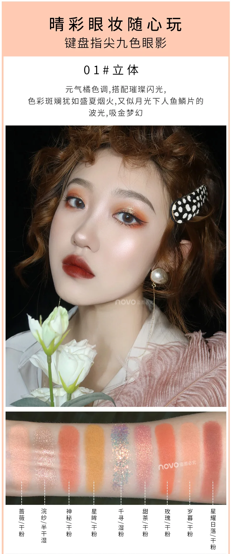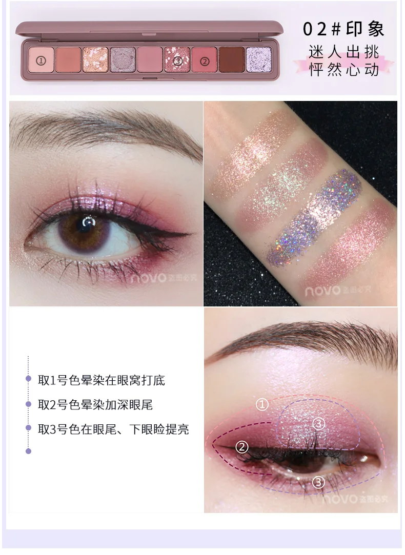 NOVO 9 цветов, Модная палитра теней для век, матовые блестящие тени для макияжа глаз, водостойкая стойкая пигментированная гладкая косметика