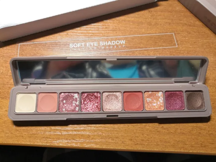 Это сейчас мои любимые тени сейчас. Заказ приехал за месяц. Задержался где-то на границе, потому что отправлен был быстро и по территории России ехал довольно бодро. Купила по акции, сразу три палетки по цене одной. Все целое. На крышке зеркальце под пленкой. На базу держатся отлично. Позволяют создать образ с эффектом мокрых век, как вечерний, так и дневной. Под вечер блестки под глазами есть конечно, но и на глазах их остается достаточно. В складку тени не скатываются (а может база хорошая). Одна проблема - на морозе (от минус десяти) плохо держатся на глазах заметно хуже.