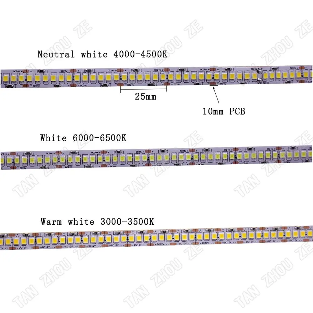 Светодиодная лента CRI 80 + 5 мм 10 мм PCB 12 в 24 В 2835 120 светодиодный s 240LED s 4000 LED sm Диодная Гибкая светильник вая лента 6000K нейтральный белый теплый белый 5 м