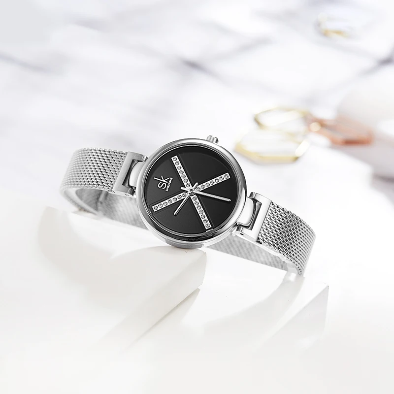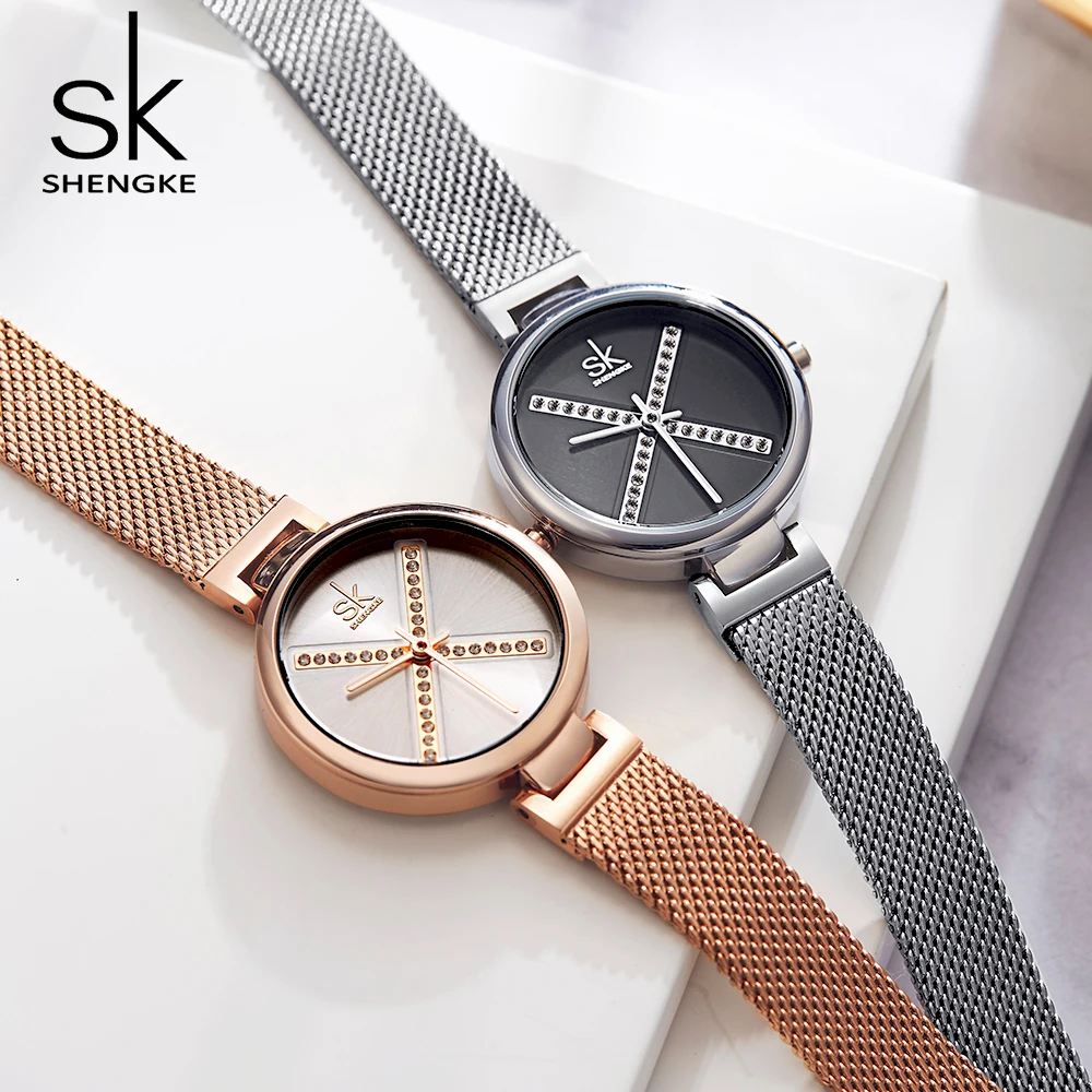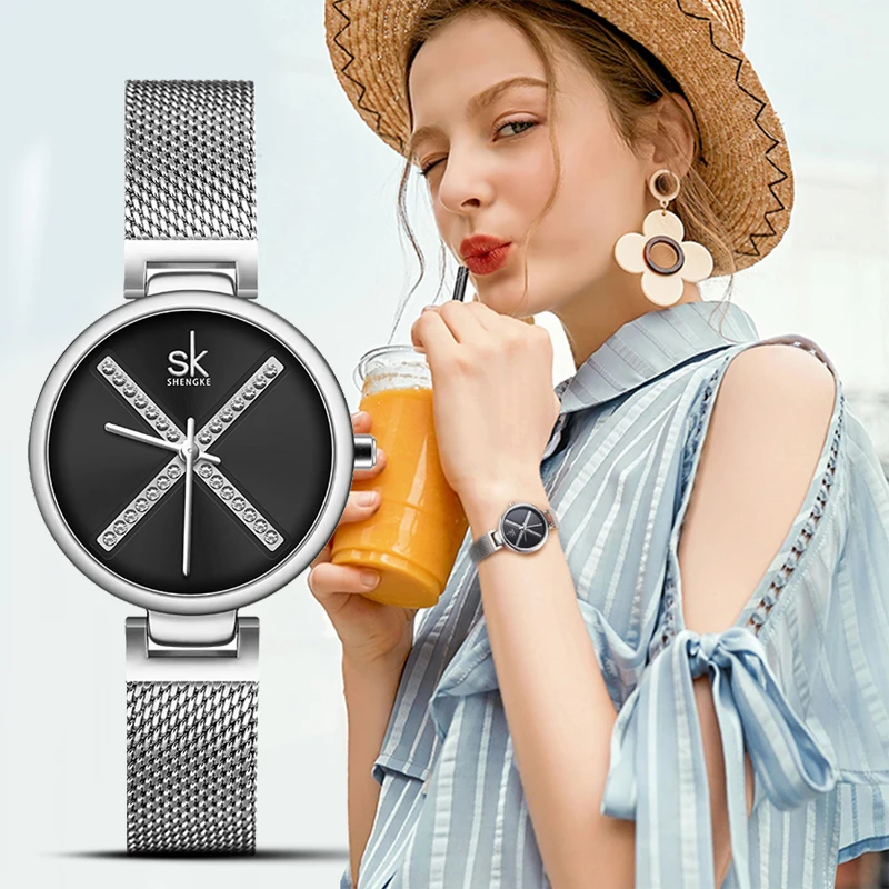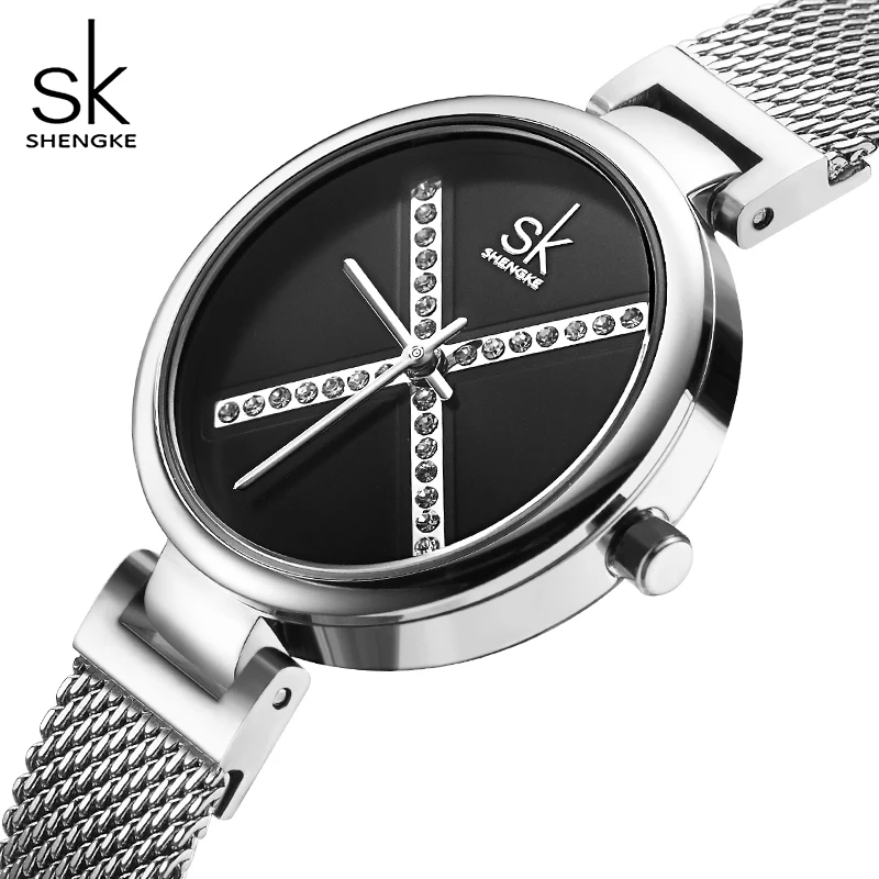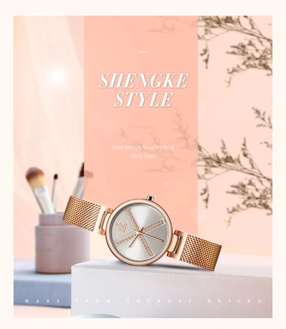 SHENGKE новые ультратонкие роскошные женские кварцевые часы 8 мм, женские серебряные часы со стальным ремешком, модные наручные часы для женщин, Montre Femme