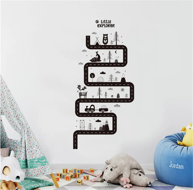 Мультяшные автомобильные дорожные наклейки на стену для детской ком...