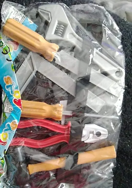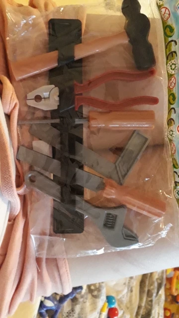 дошло быстро и главное в целостности,думал они будут немного покрупнее (есть фото молоточка в руке)но малышу 2х лет очень понравилось.С отвёрткой лучше поаккуратнее,как я читал в каком то отзыве ее вообще убрали,сделал так же. вообщем всем доволен.