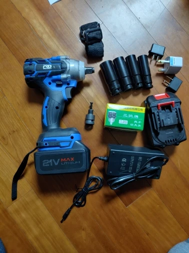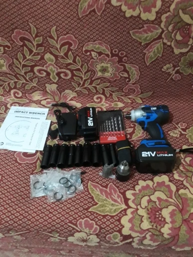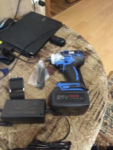 Получил комплект как заказывал. Работает), на руке бьет существенно , на закручивание 3 режима , на откр. 2 режима , акб с зарядом 2 деления из 3-х , ньютоны не замерял. Качество литья корпуса гайковерта на 3+ , акб вид снизу как будьто б/у , зарядка внешне на отлично.
