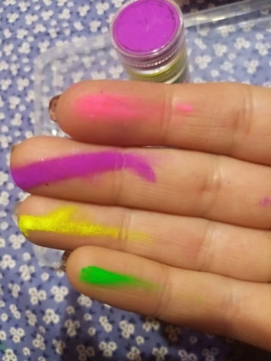 пигментация на высшем уровне, буду использовать как для макияжа, так и для ногтей. но фото нанесена на чистую кожу, без базы. позже возможно дополню отзыв.