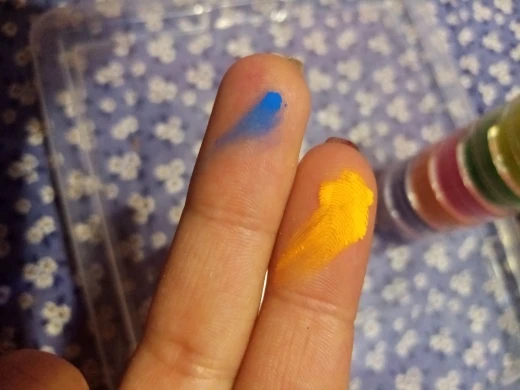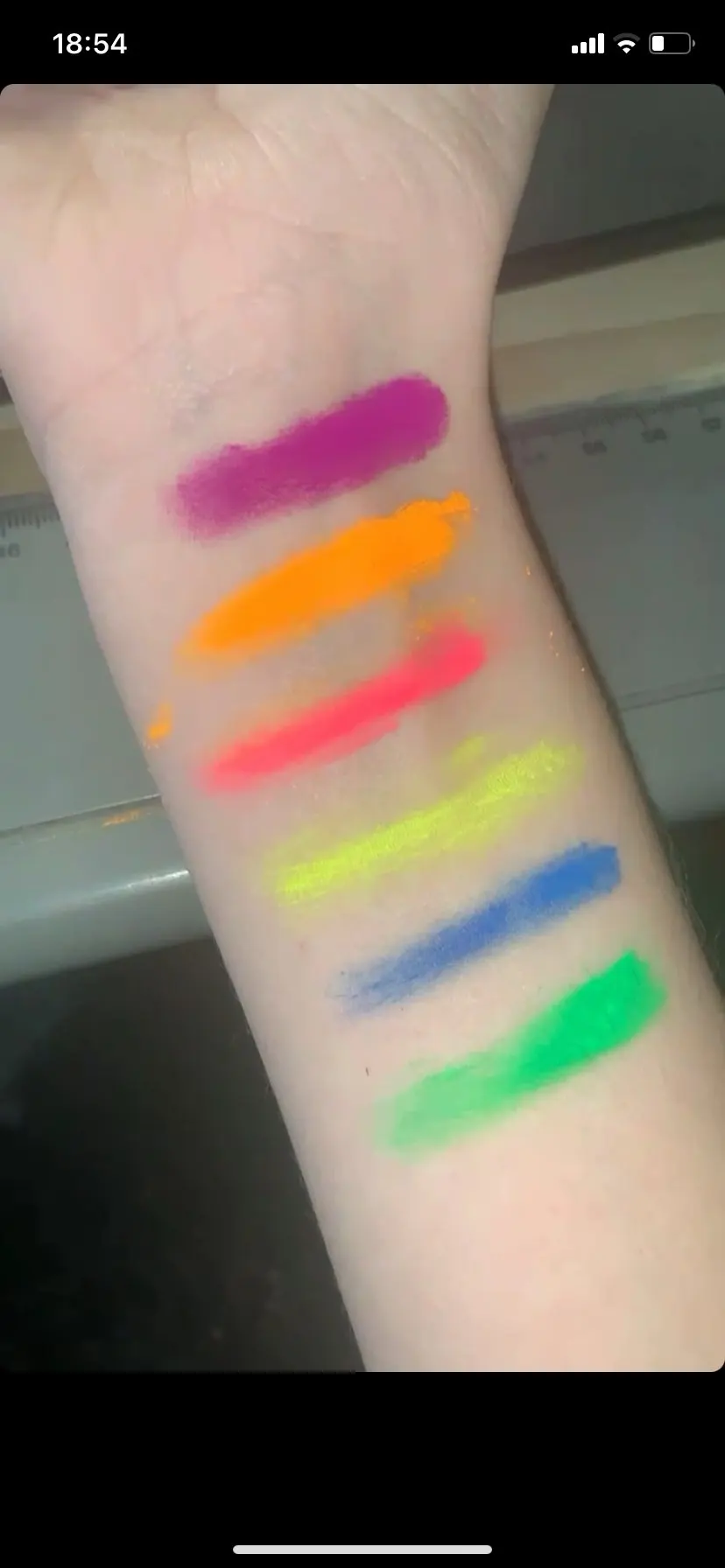 Пигменты очень насыщенные, яркие. Хорошо лежат на белой подложке или консилере. Неприятных ощущений не вызывают. Светятся под ультрафиолетом. Однозначно советую! Пришли за месяц. Подписывайтесь на мой тикток, там я выкладываю макияжи @nebovdohnoveniya_