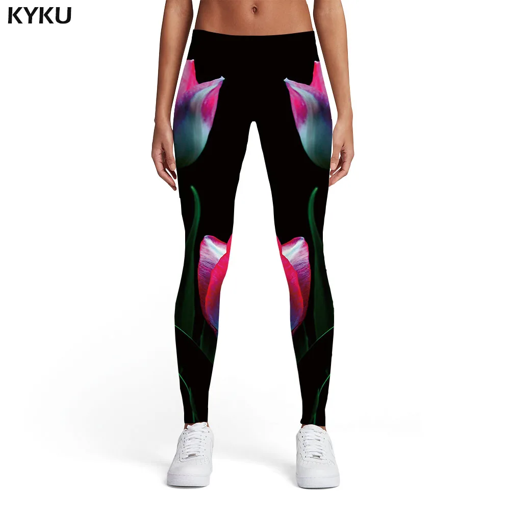 Женские Эластичные Легинсы KYKU, в готическом стиле, из спандекса, с розовыми цветами, красные, сексуальные, в стиле Харадзюку