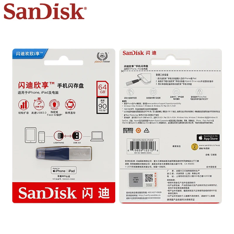 Мини-флеш-накопитель SanDisk iXpand, USB 3,0 OTG, USB-флеш-накопите...