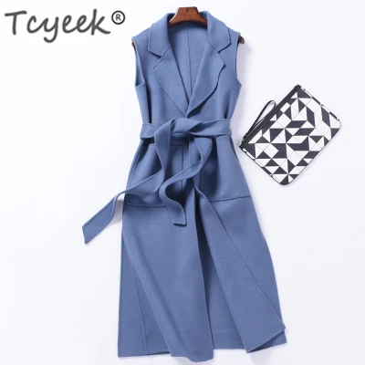 Tcyeek 2020 модный 95% двухсторонний кашемировый женский жилет, длинный однотонный шерстяной жилет, женский шерстяной жилет, женский жилет W1127