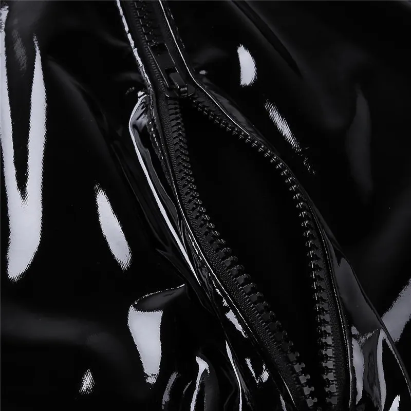 Мужские трусы-боксеры из лакированной кожи, с коротким рукавом и молнией спереди, для ночного клуба