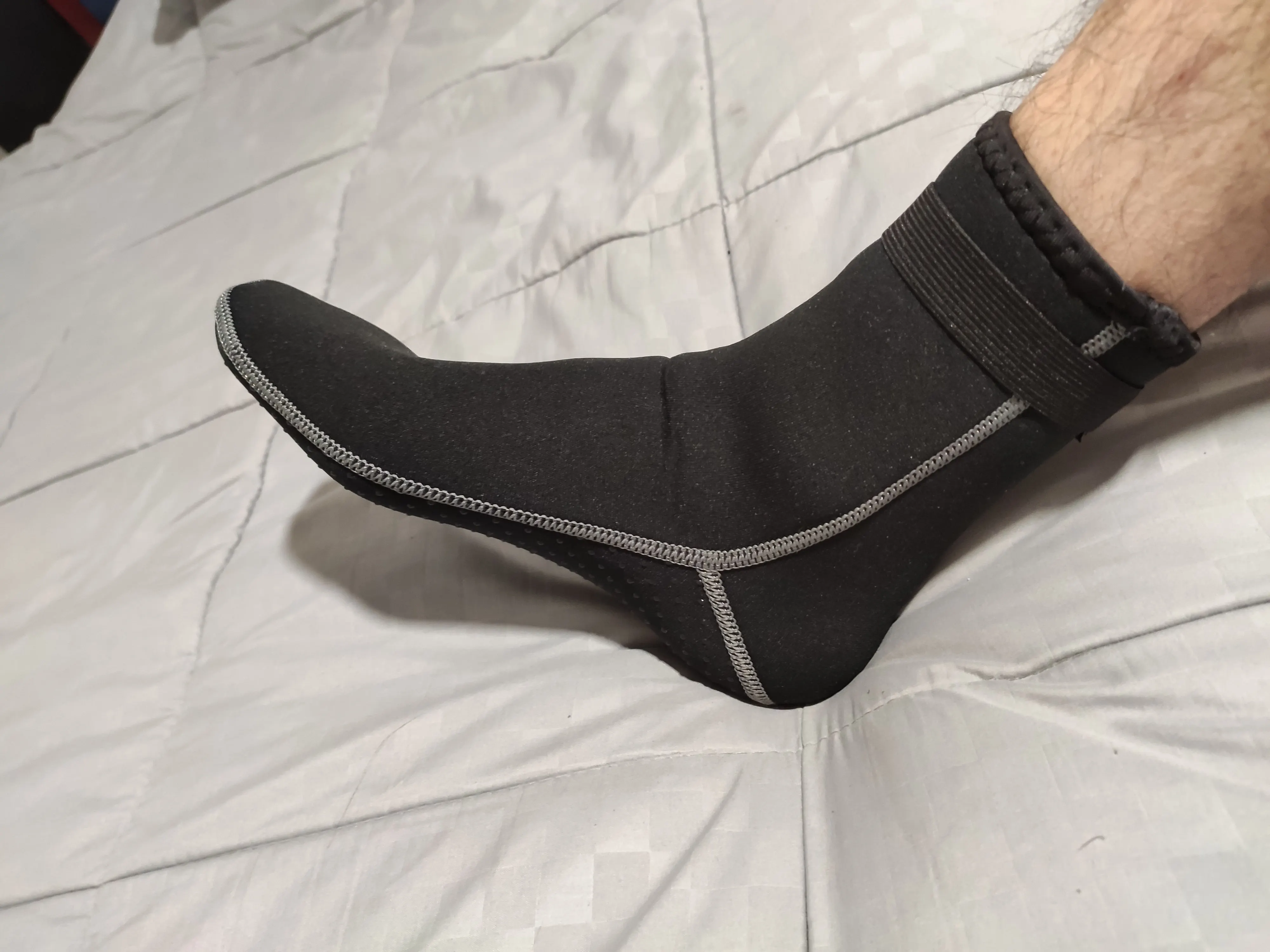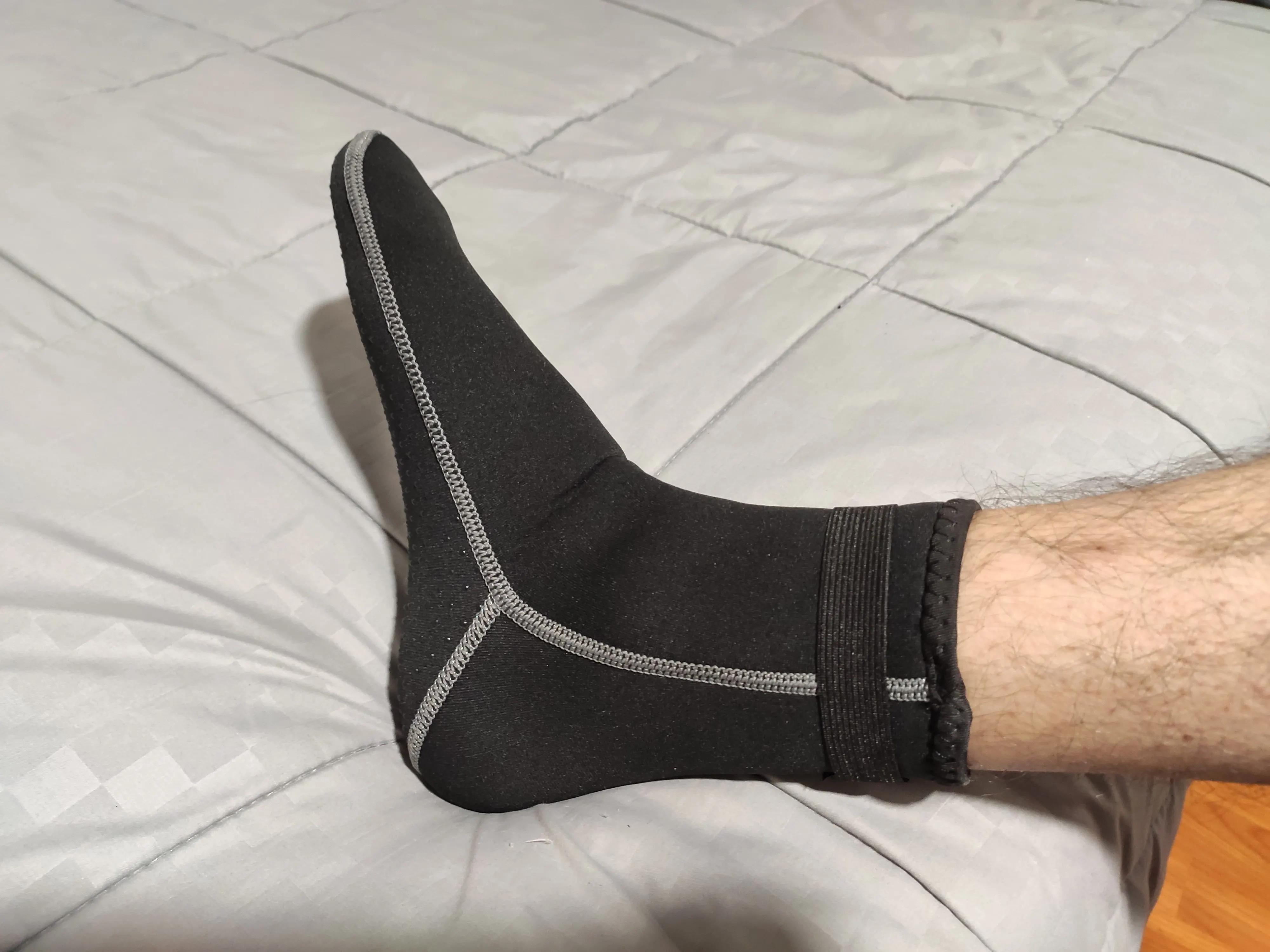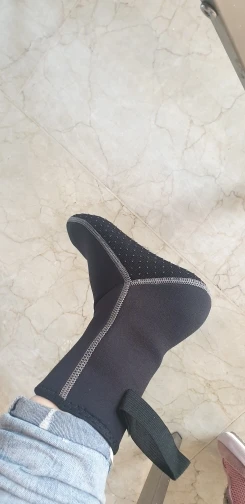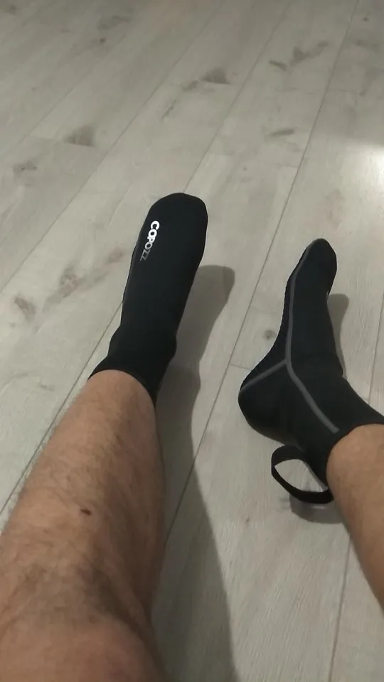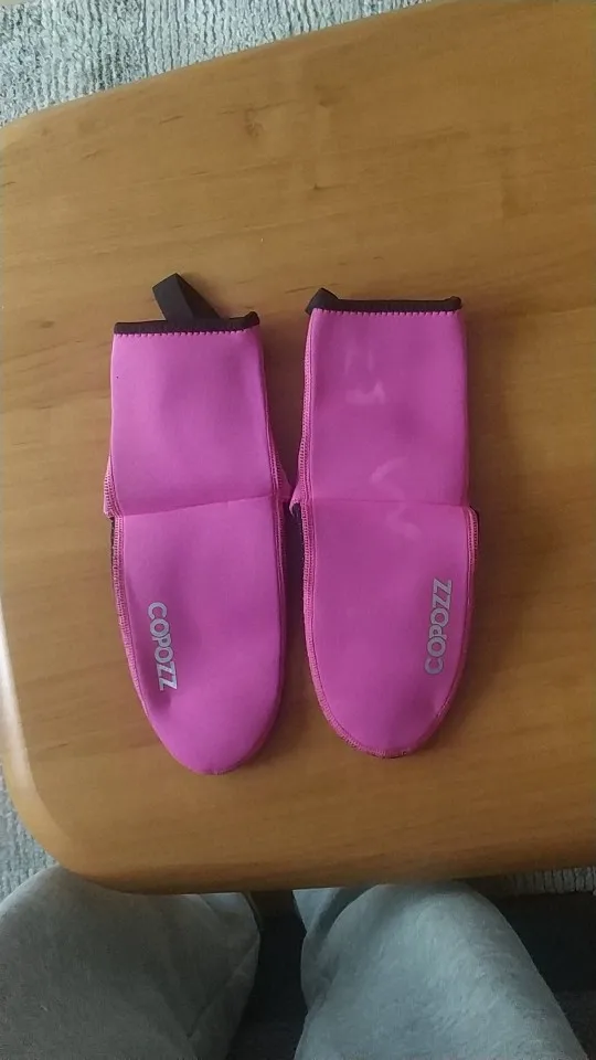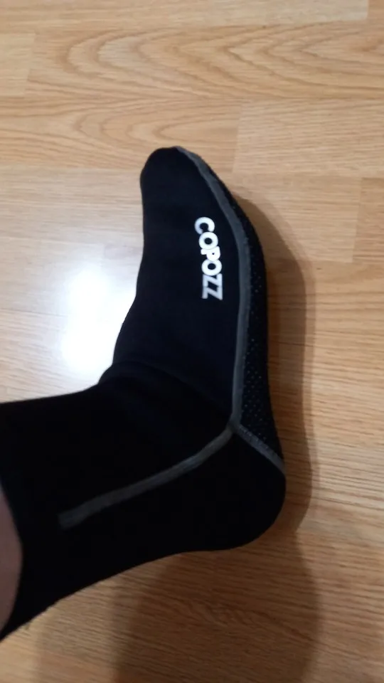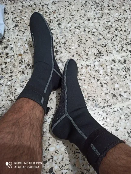 Они выглядят хорошо. Хороший пошив, хорошо сидит, толщина 3 мм кажется правильной. Резиновые ленты на подошве, чтобы не скользить, выглядят хорошо сейчас, остается только использовать.