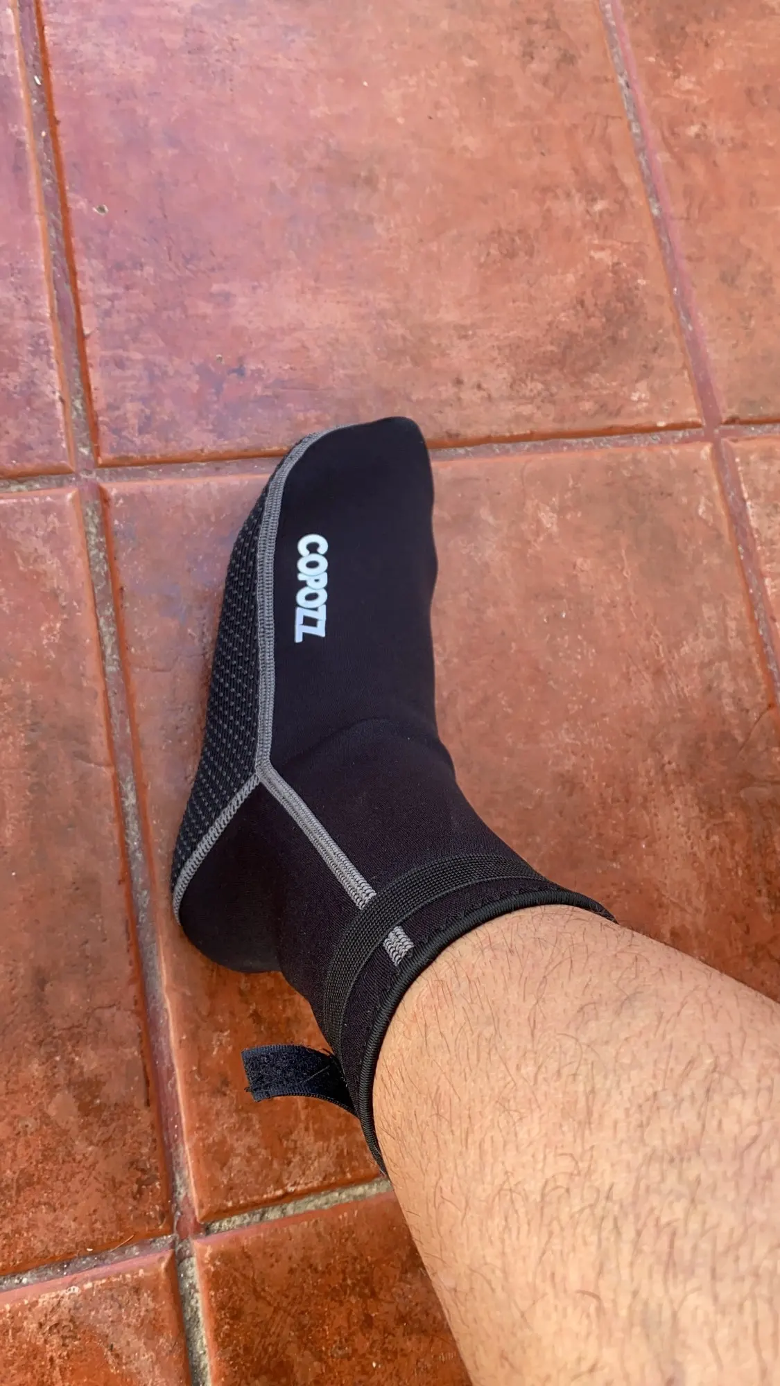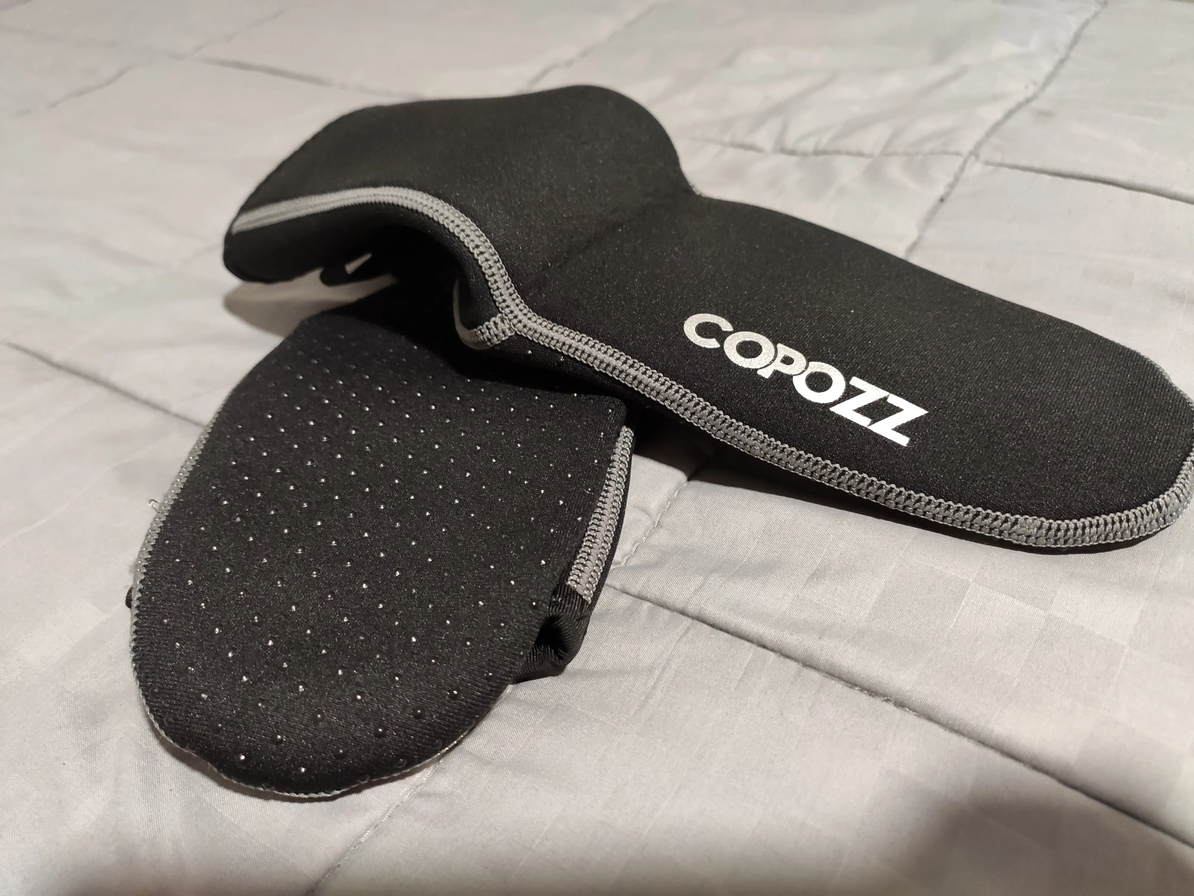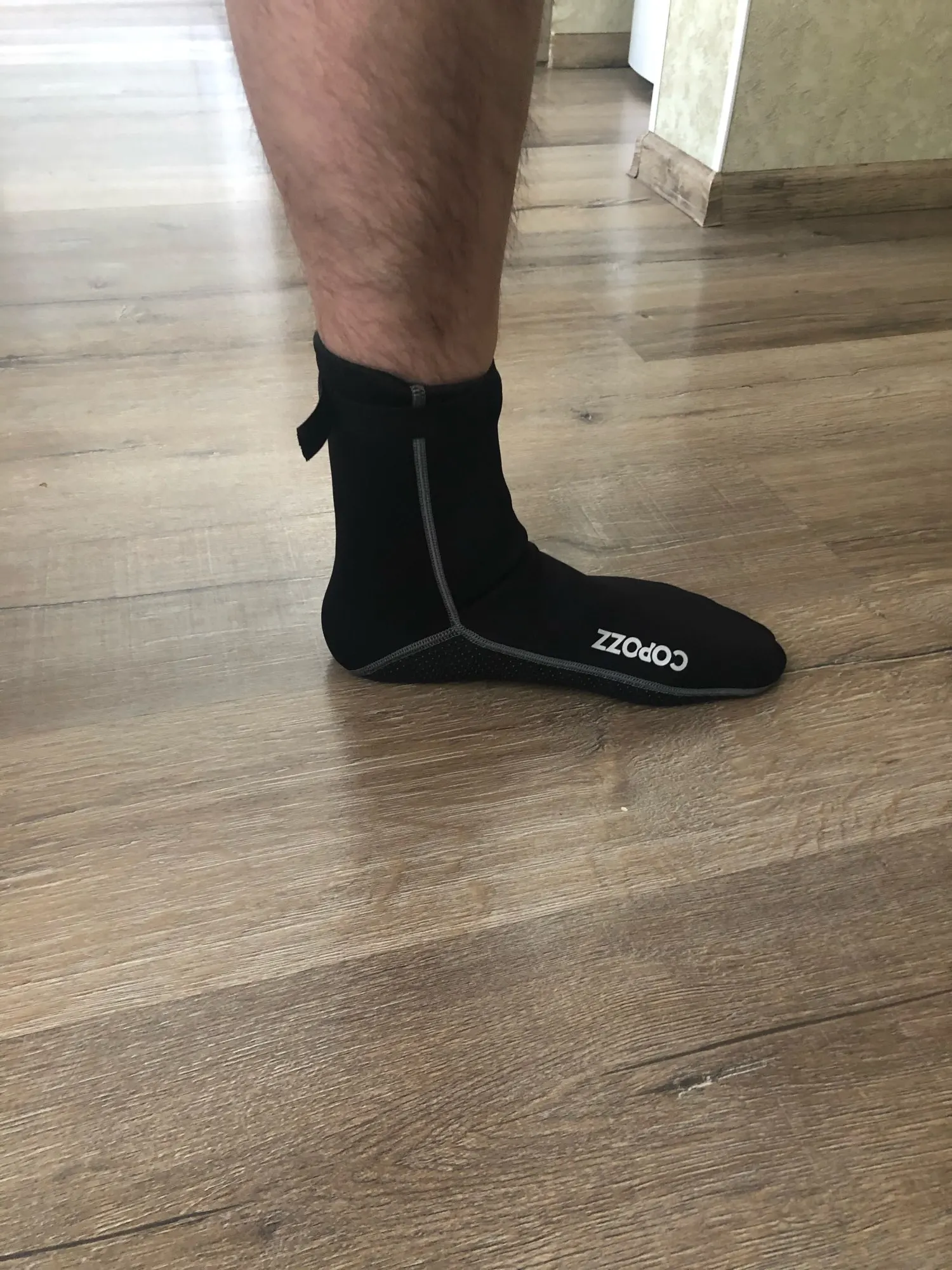 Они выглядят хорошо. Хороший пошив, хорошо сидит, толщина 3 мм кажется правильной. Резиновые ленты на подошве, чтобы не скользить, выглядят хорошо сейчас, остается только использовать.