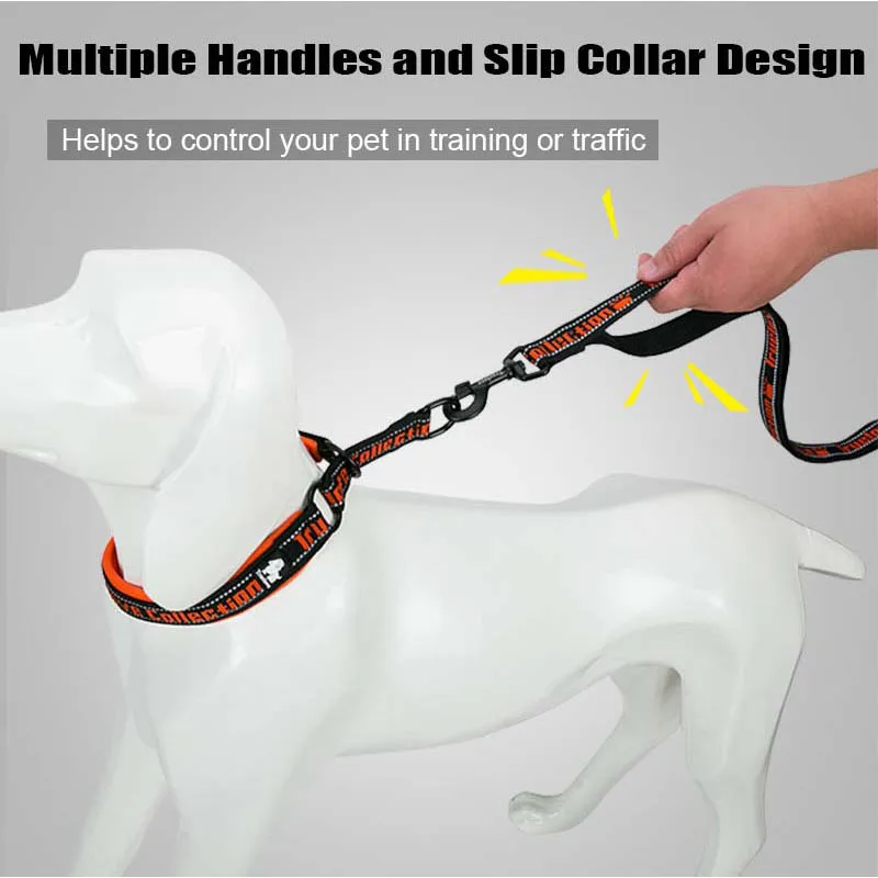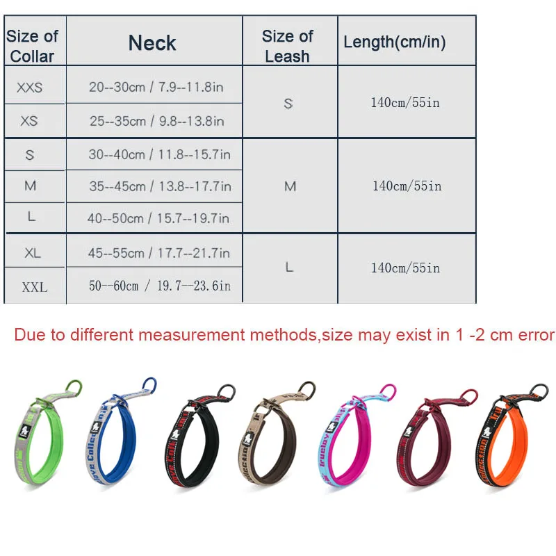 1. Нескользящий воротник и несколько ручек -Уникальный дизайн воротника, который идеально подходит для тренировок собак. -- Помогает контролировать вашего питомца в дорожном движении или тренировках. 2. Спасибо за нейлон, мягкий неопрен с подкладкой для защиты вашего питомца меха и кожи. 3. Кольцо из алюминиевого сплава для превосходной прочности. 4,3 м светоотражающие обеспечивают хорошую видимость ночью. Красивые и модные воротники!