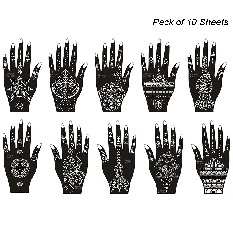 Набор трафаретов Xmasir для татуировок, хна, 10 шт.компл., для женщин, для девочек, Временные татуировки, наклейки для рук, боди-арт, новый дизайн
