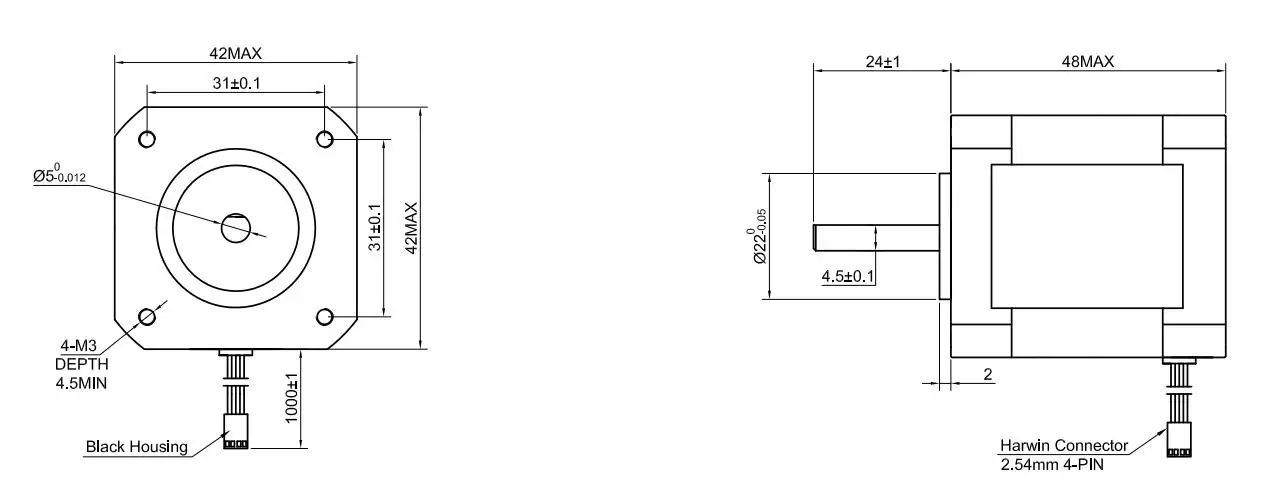 Это обновленная версия nema 17 шагового двигателя с удерживающим крутящим моментом 59Ncm (83,6 oz.in) и полным d-cut валом. На основе старых версию, у нас есть удлиненный кабель длиной 1 метр (заказное, Авиапочта Китая) и добавьте 4-контактный 0,1 "шаг (2,54 мм) Harwin гнездо разъема в конец кабеля. Он идеально подходит для 3D принтеров, а также ЧПУ и робототехники.