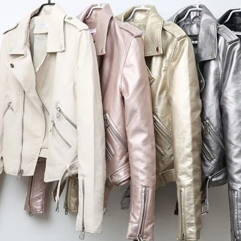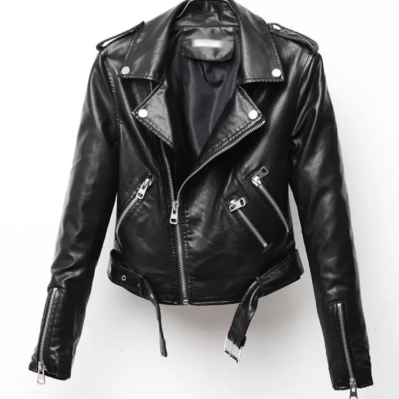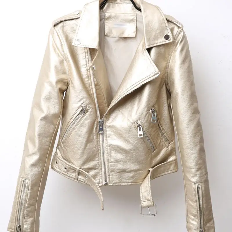 Женская короткая мотоциклетная куртка, асимметричная кожаная куртка на молнии с металлическим блеском и отложным воротником, уличная одежда в стиле панк