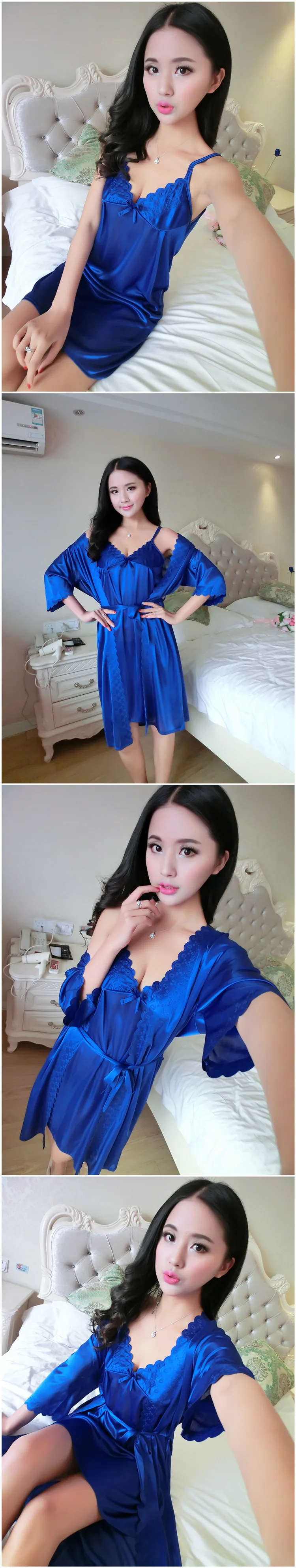 (Базовая и верхняя одежда) Винтажный халат, атласная ночная рубашка, комплект для дам, летняя и осенняя одежда для сна, халат принцессы, платья для женщин, новая мода