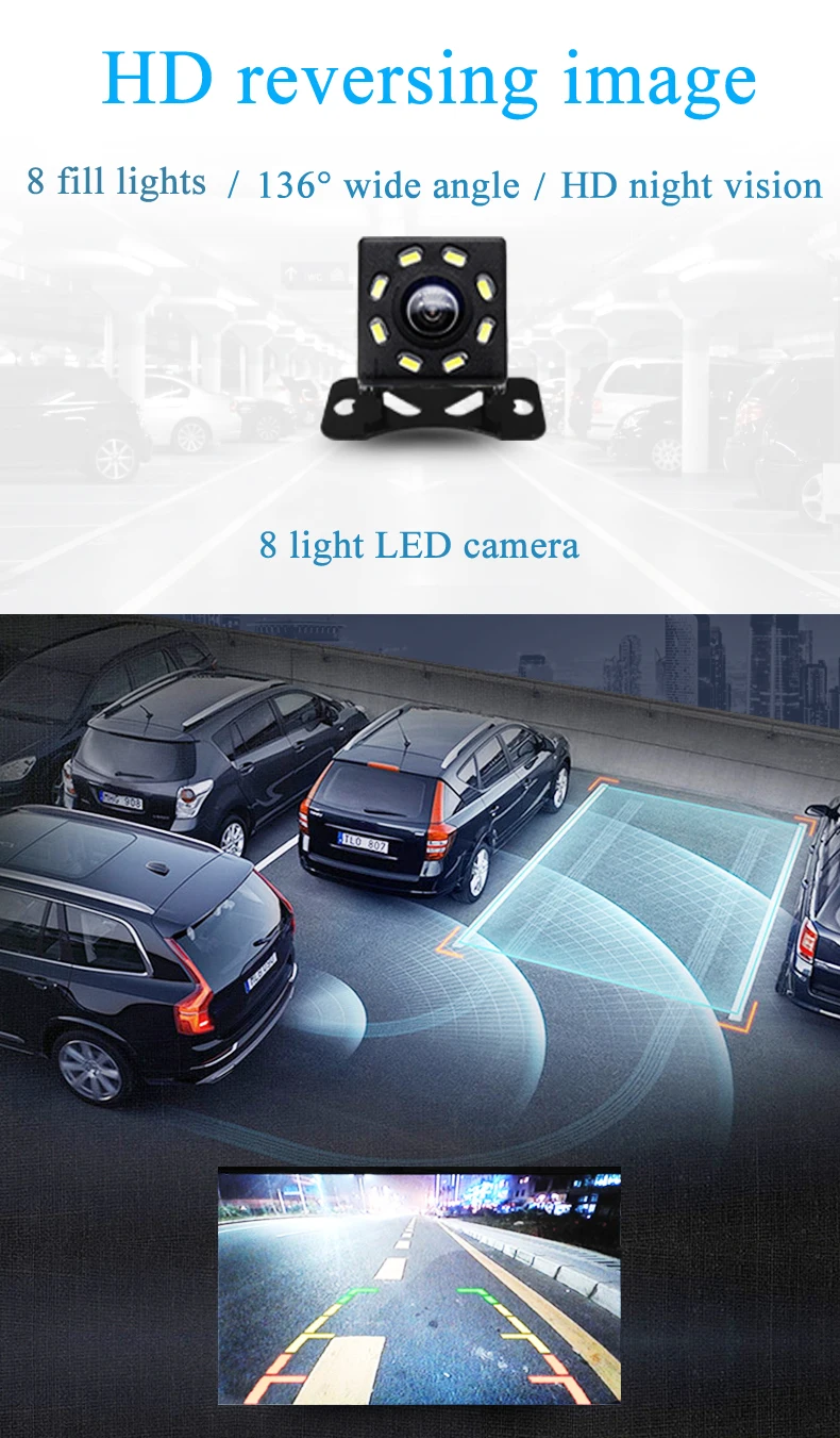Задняя передача автоматически переключается на изображение заднего хода высокой четкости, что обеспечивает помощь через эффект заднего хода. Вы можете быстро и легко припарковать автомобиль в правильном положении, что значительно экономит ваше время и снижает риск трения.