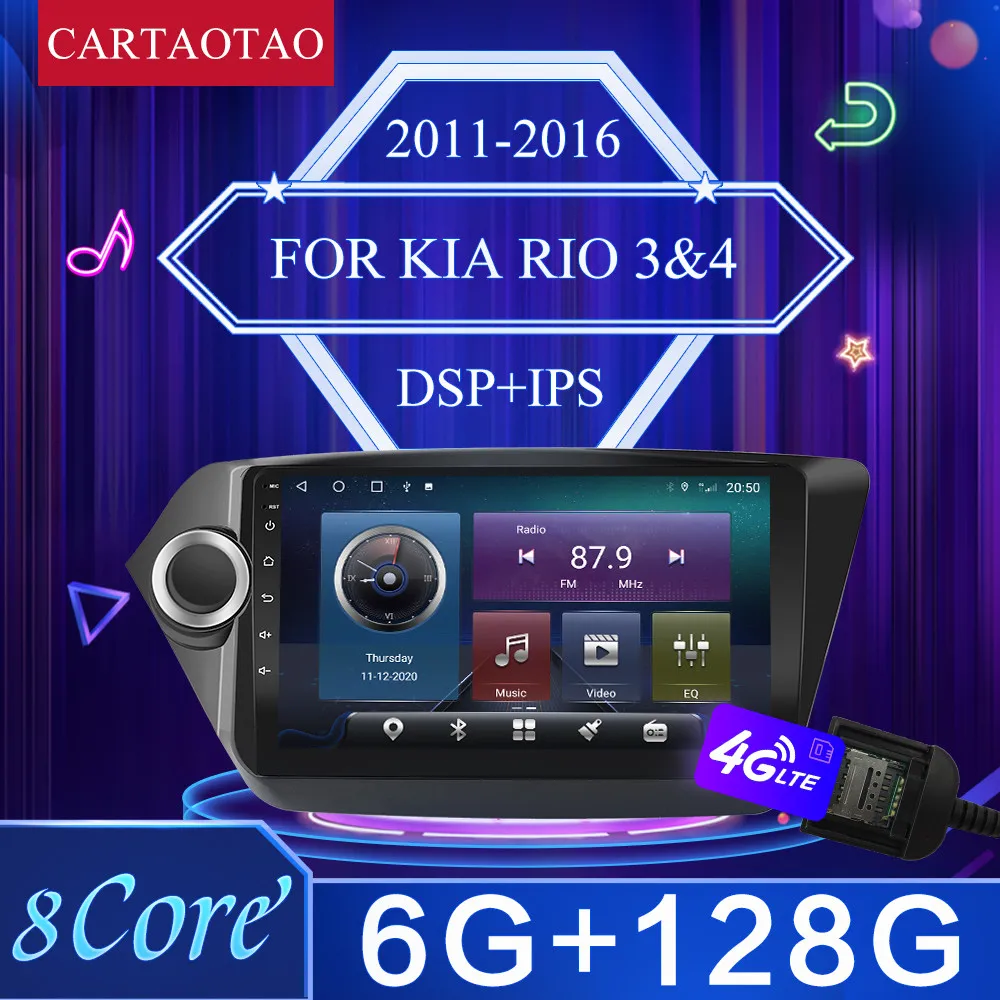 Автомобильный мультимедийный видеоплеер 2 din, Android 9,0, для KIA RIO 3 и 4, 9-дюймовый сенсорный экран, GPS, стерео навигатор, Wi-Fi, ОЗУ 6 ГБ + ПЗУ 128 ГБ