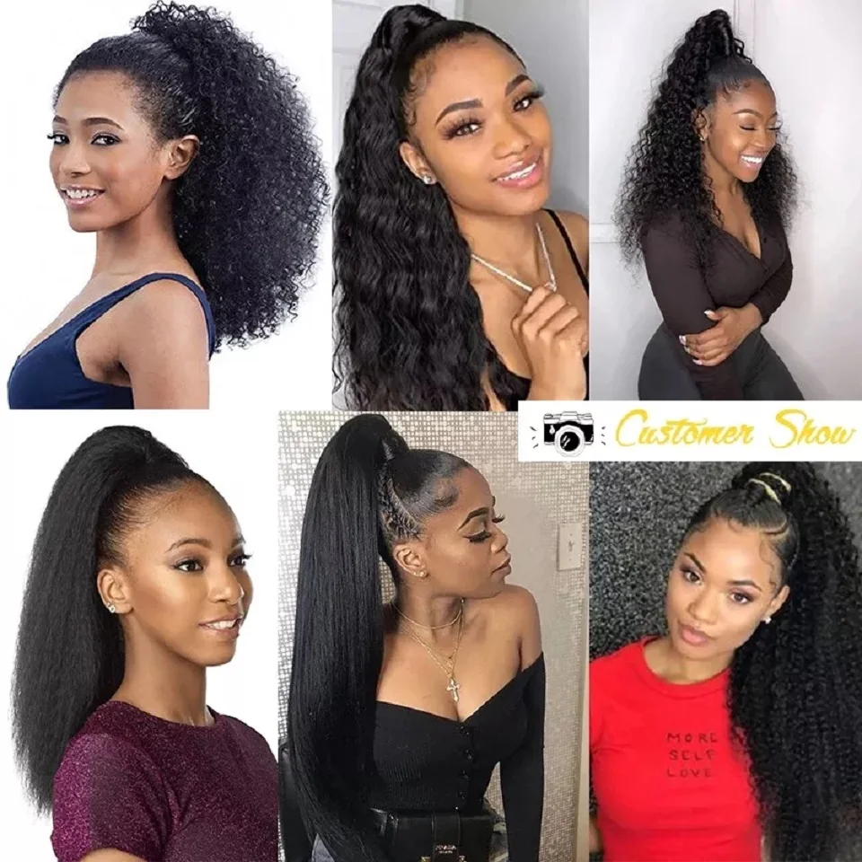 Модный конский хвост, бразильские кудрявые волосы на шнурке, конский хвост, наращивание натуральных волос Реми, обертывание вокруг зажима, конский хвост